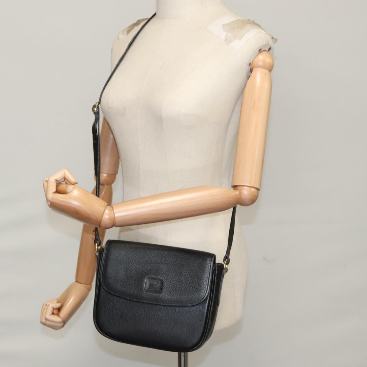 Burberrys Shoulder Bag Leather Black Auth ep6980