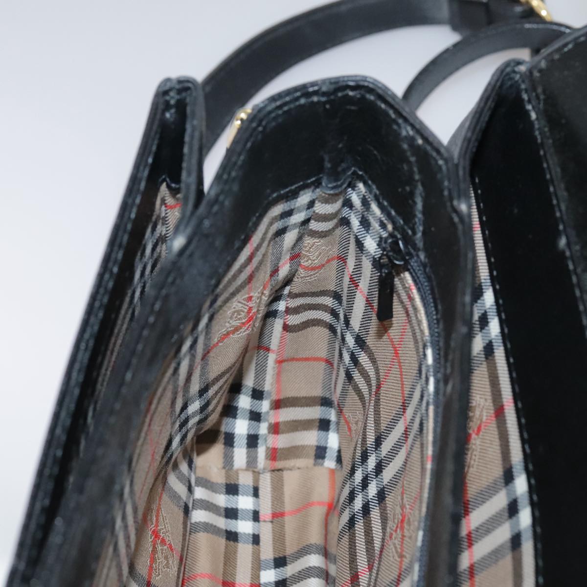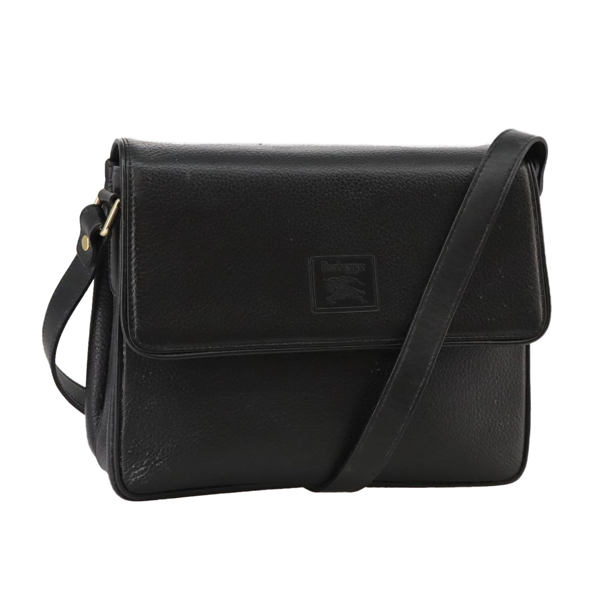 Burberrys Shoulder Bag Leather Black Gold Auth mr850