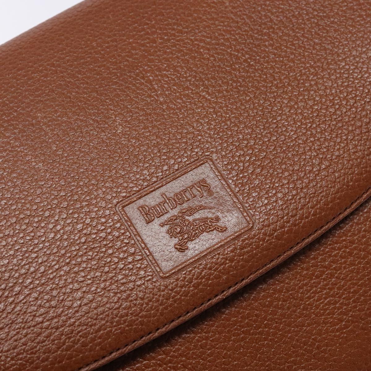 Burberrys Shoulder Bag Leather Brown Gold Auth BA5389