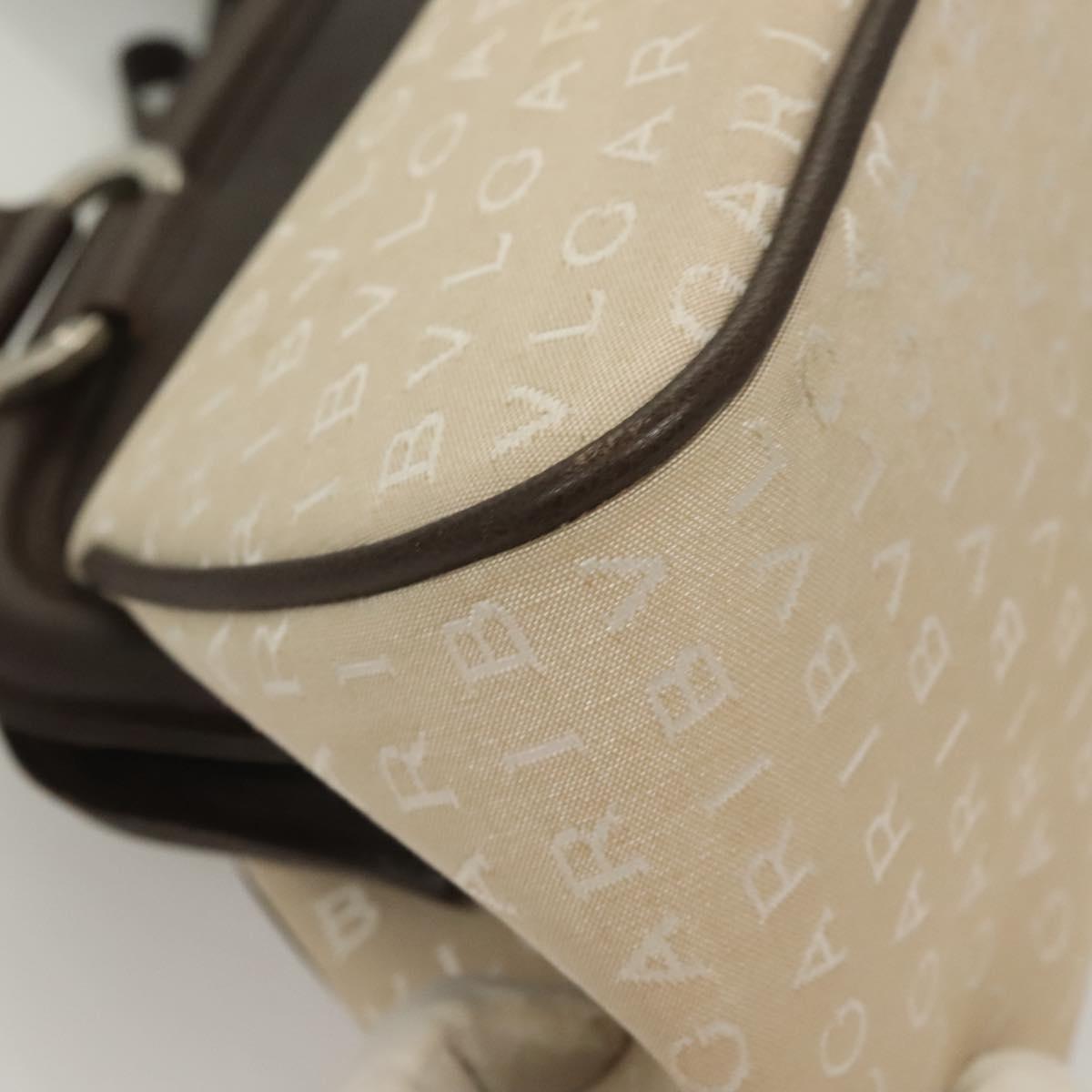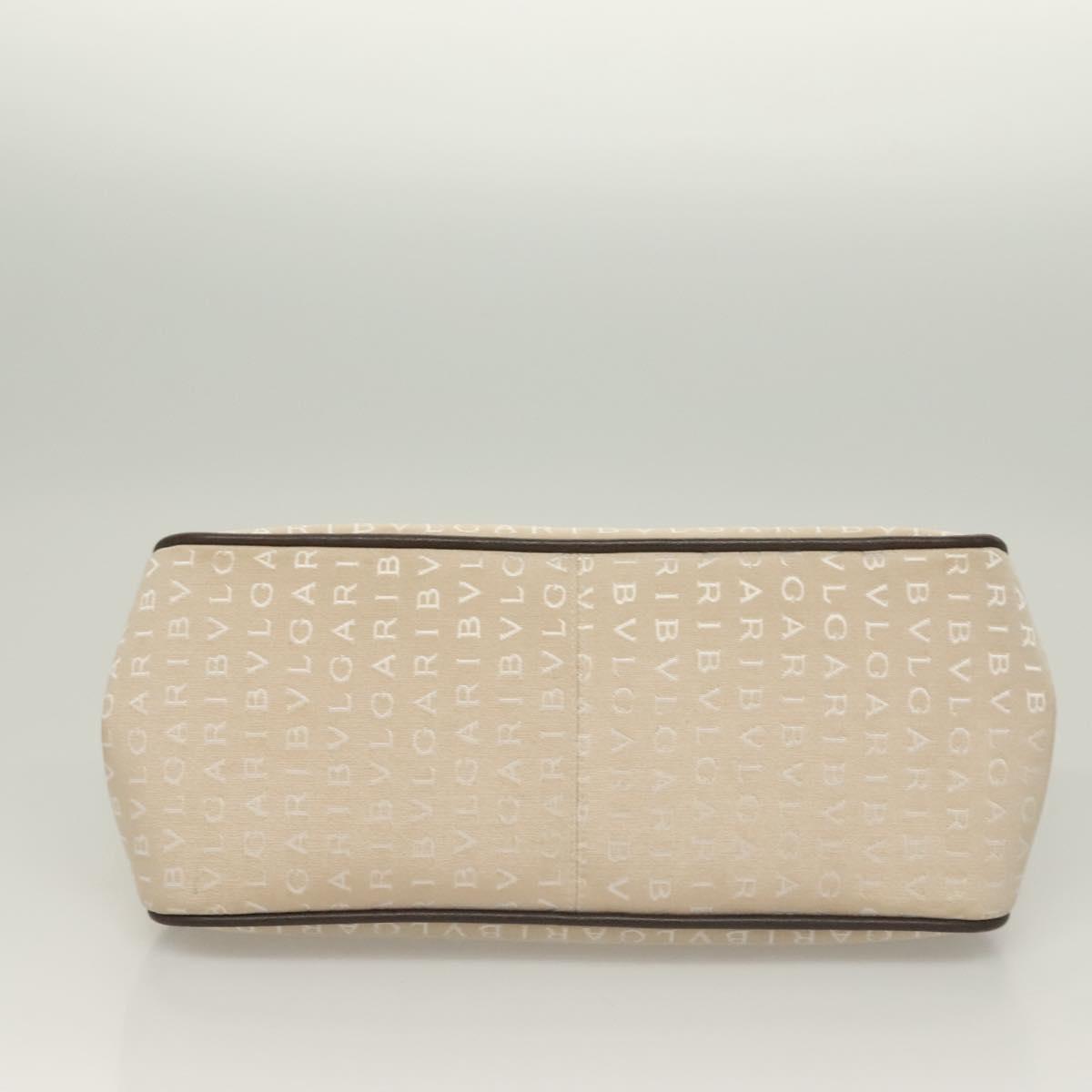 BVLGARI Logo Mania Tote Bag Canvas Leather Beige Silver Auth BA3461
