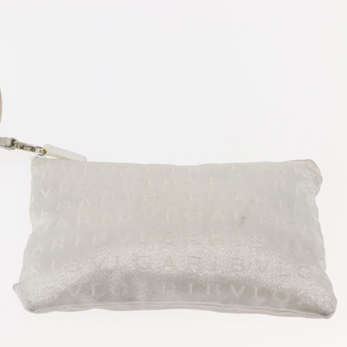 BVLGARI Logo mania Tote Bag Canvas Silver White Auth BA6909