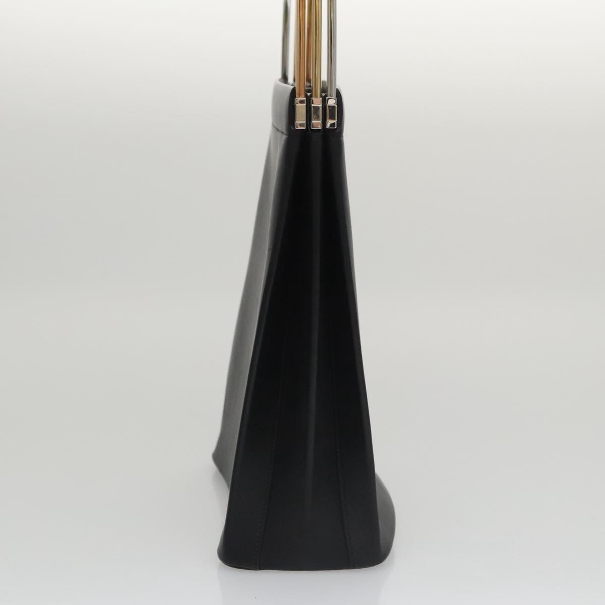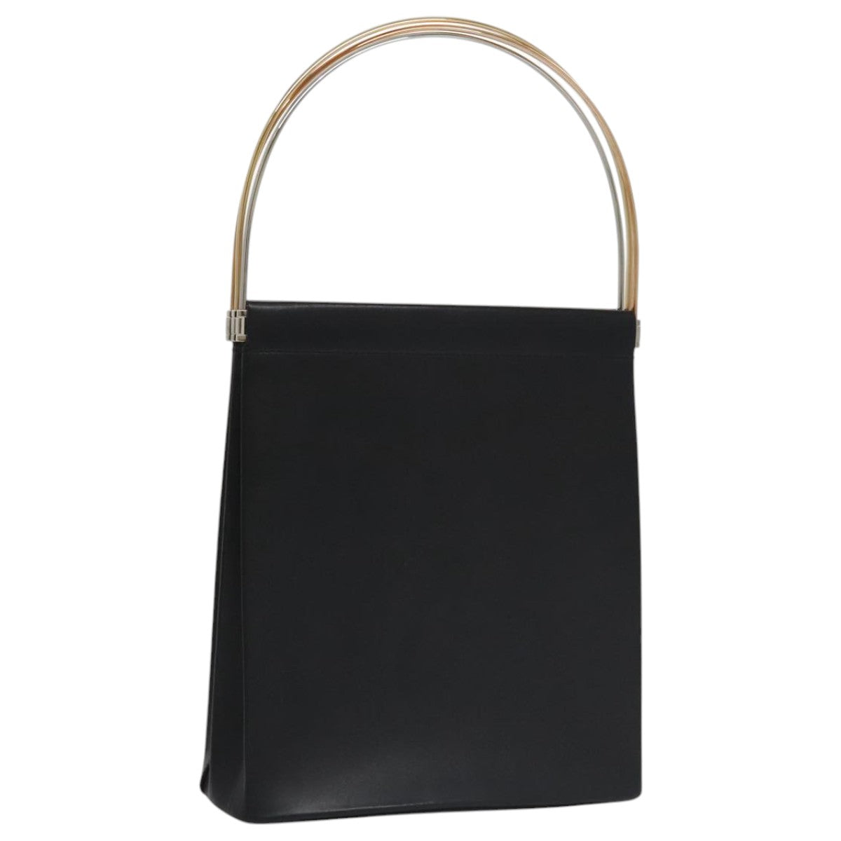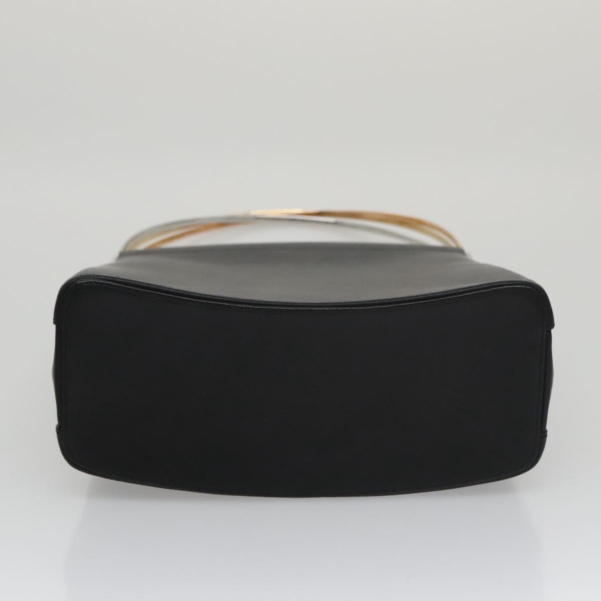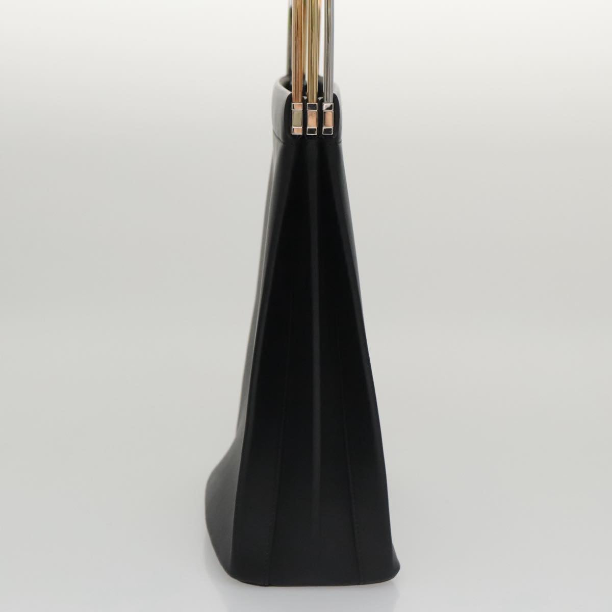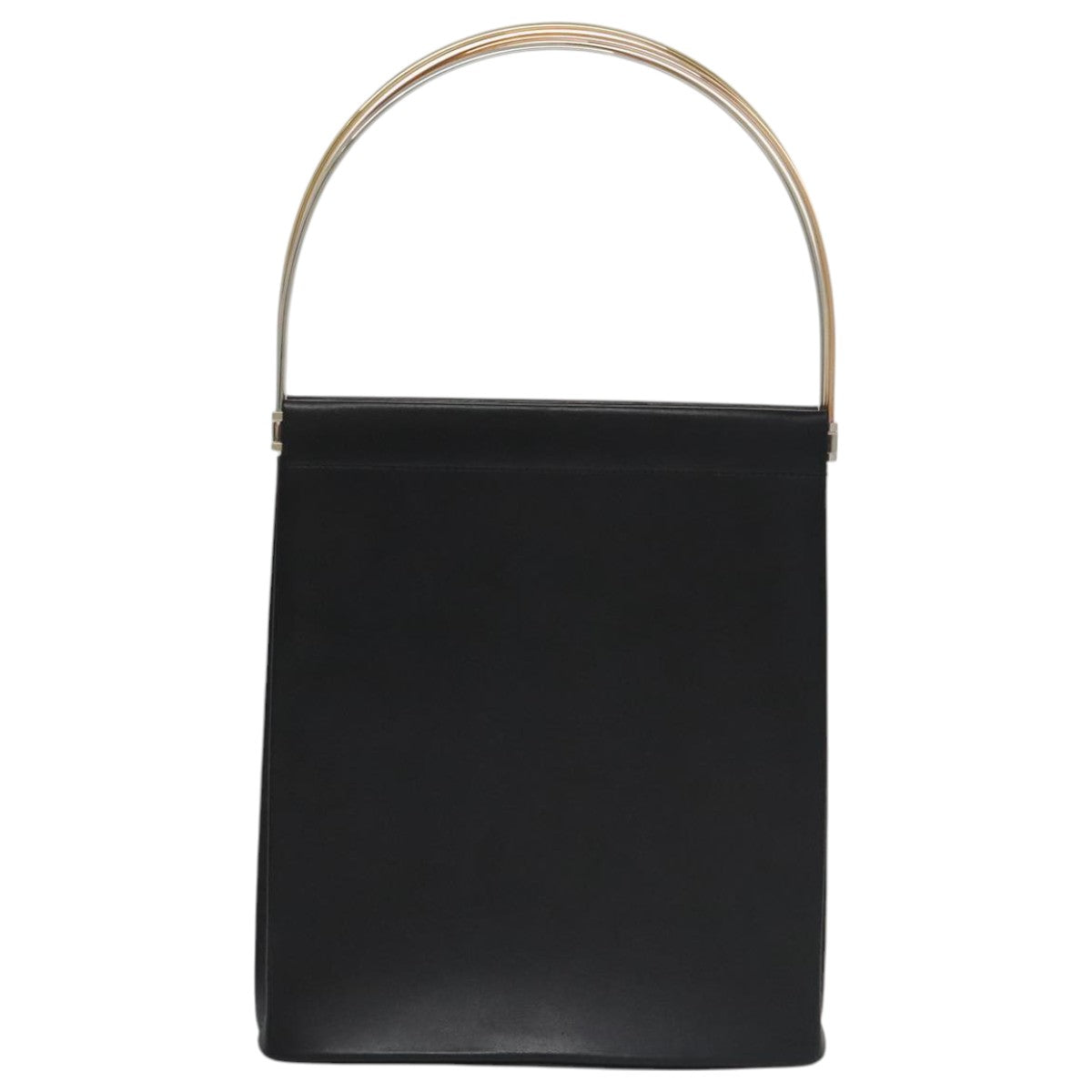 CARTIER Hand Bag Leather Black Gold Silver Auth 103956