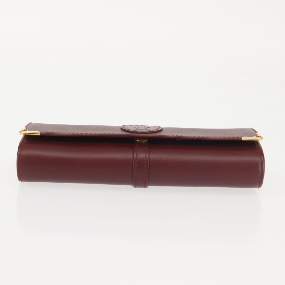 CARTIER Must Line Glasses Case Leather Bordeaux Auth am9067