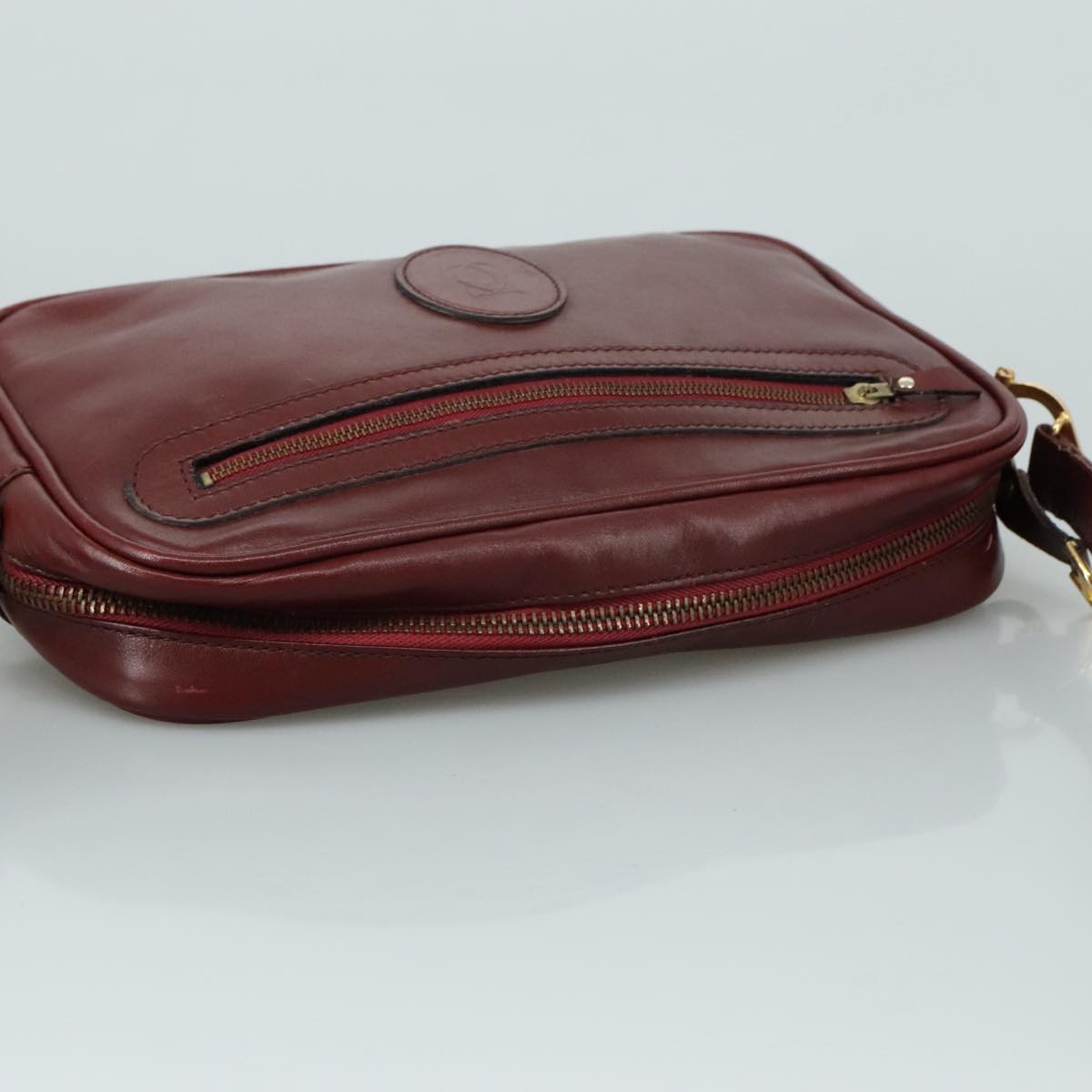 CARTIER Must Line Shoulder Bag Leather Bordeaux Gold Auth mr807