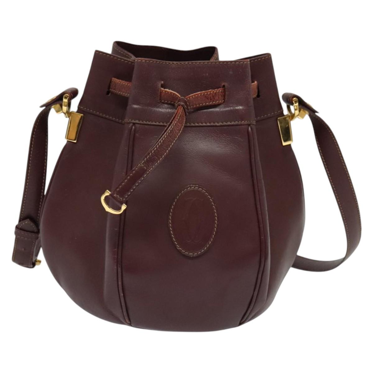 CARTIER Shoulder Bag Leather Bordeaux Gold Auth 139752