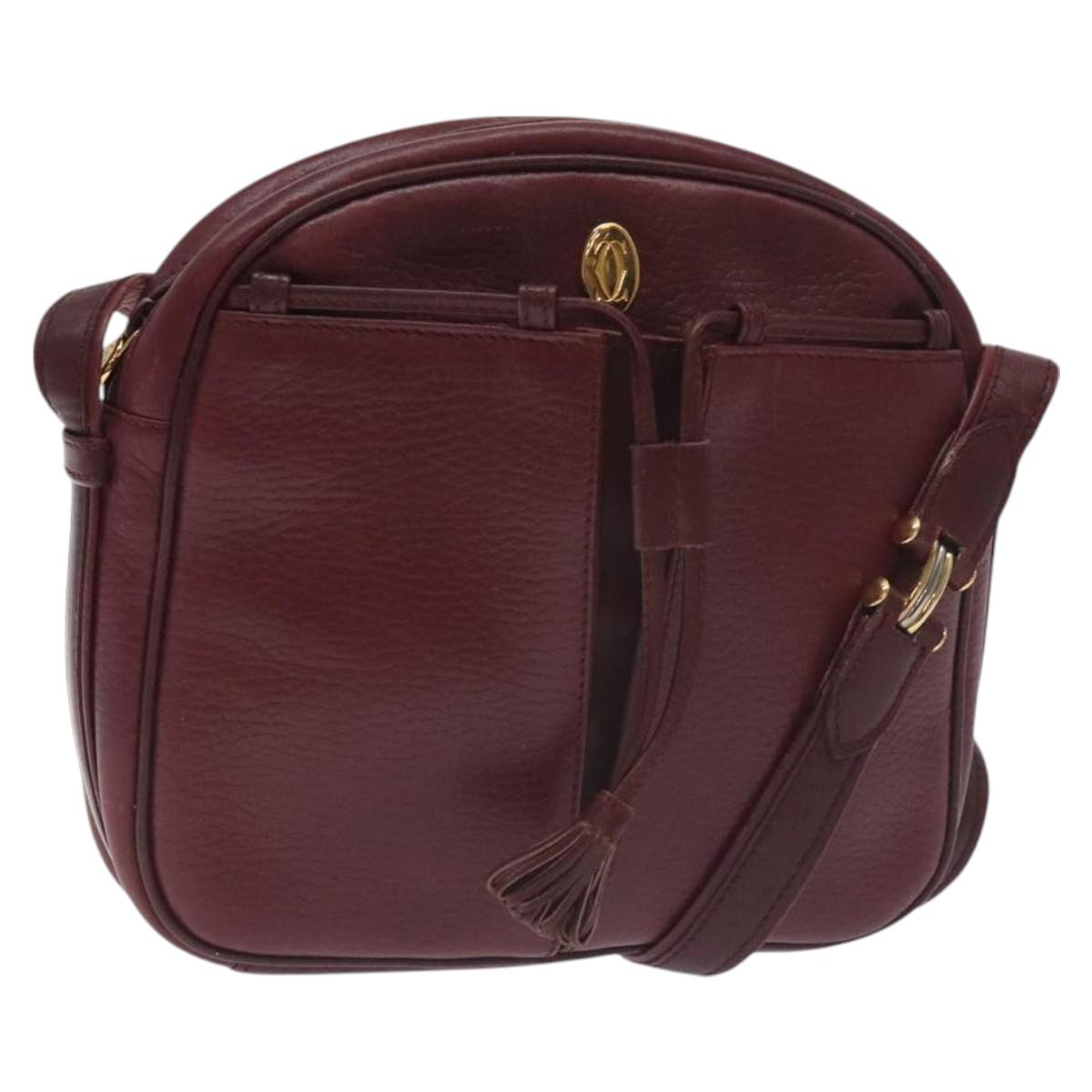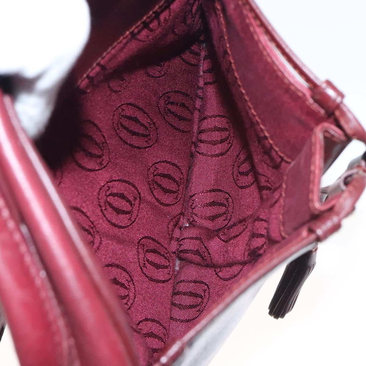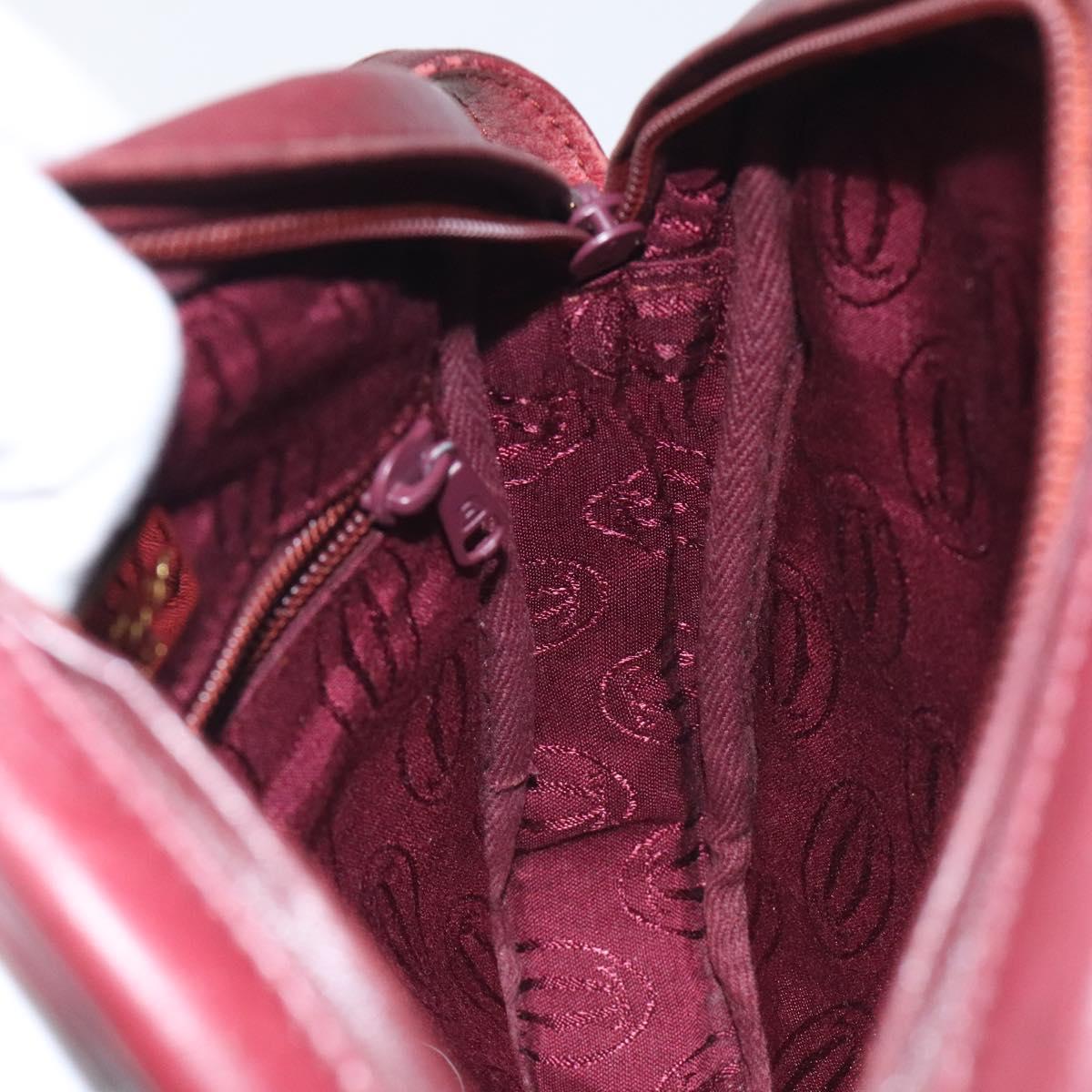 CARTIER Shoulder Bag Leather Bordeaux Gold Auth BA3477