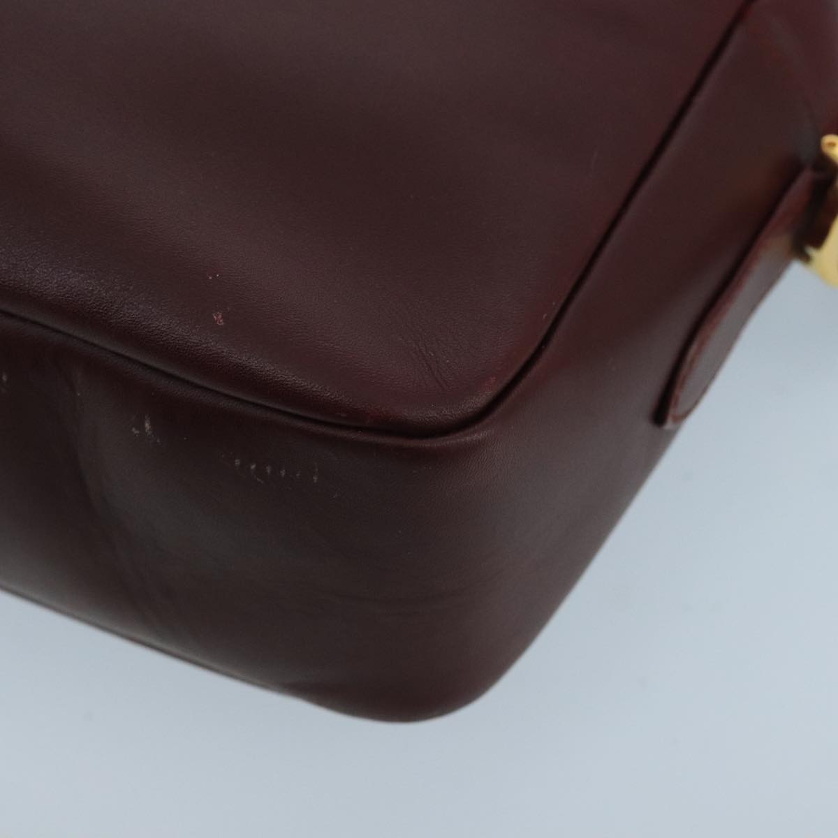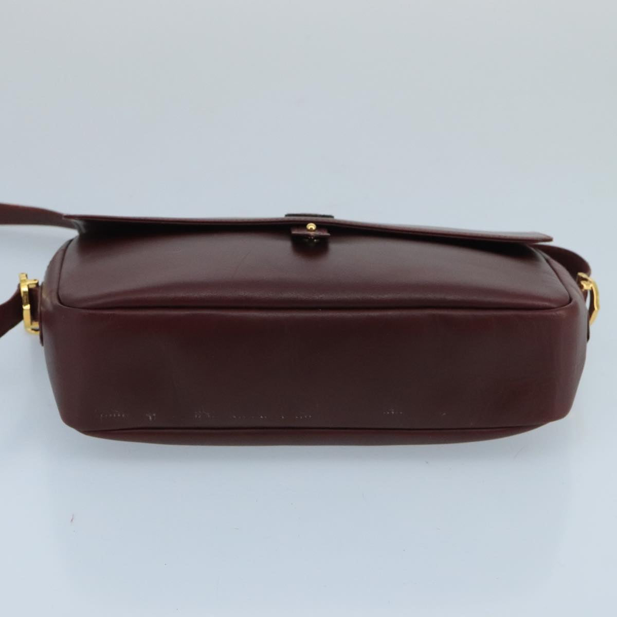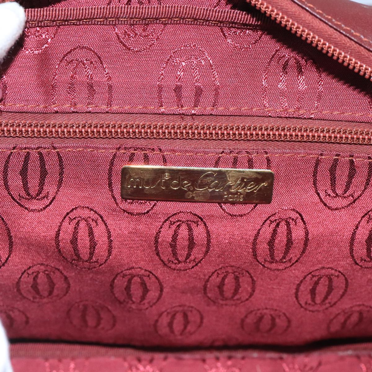 CARTIER Shoulder Bag Leather Bordeaux Gold Auth bs20383
