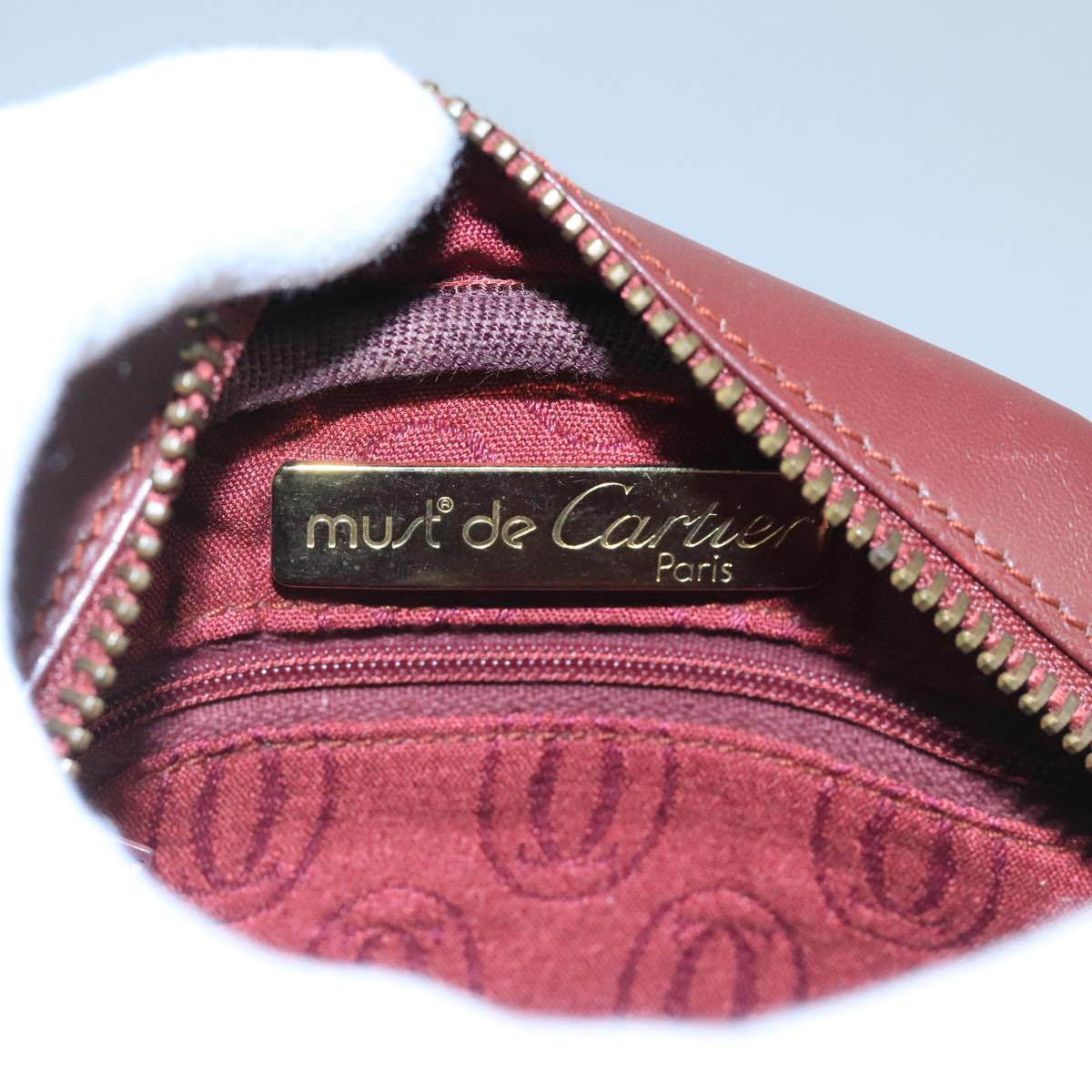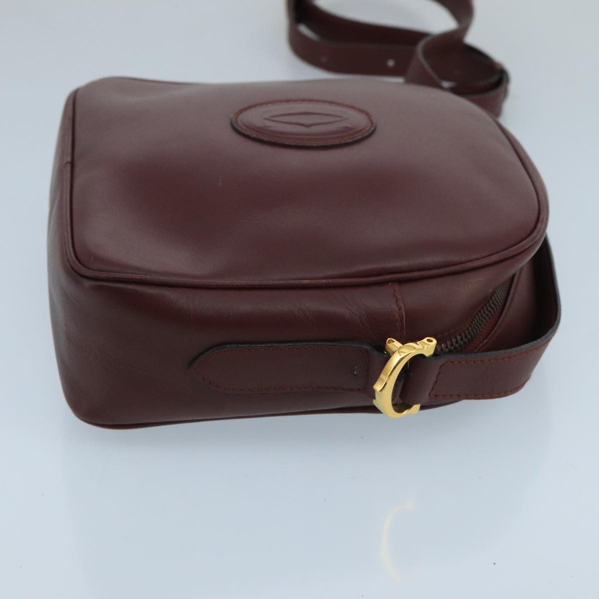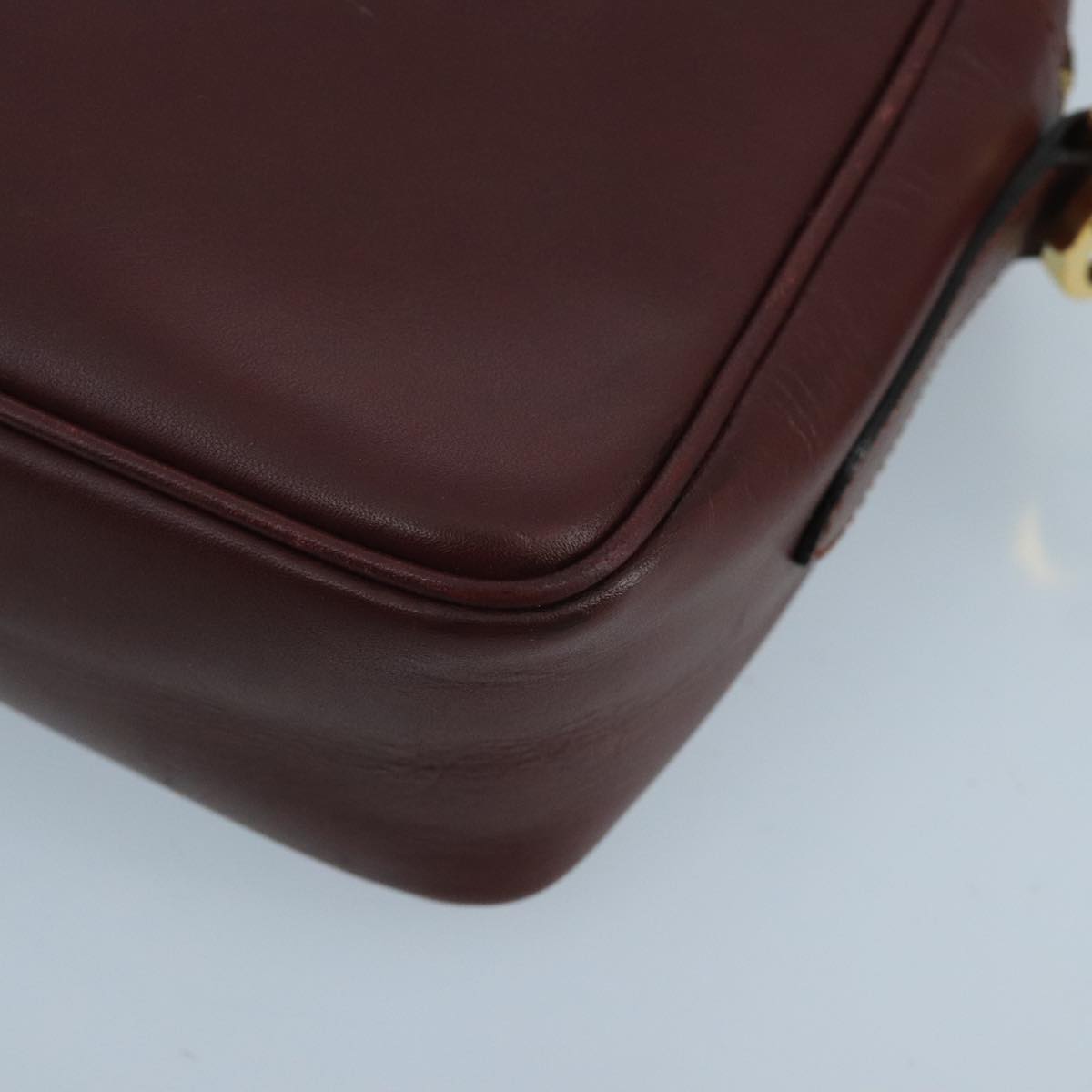 CARTIER Shoulder Bag Leather Bordeaux Gold Auth bs20384