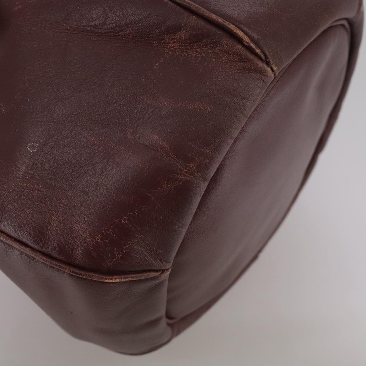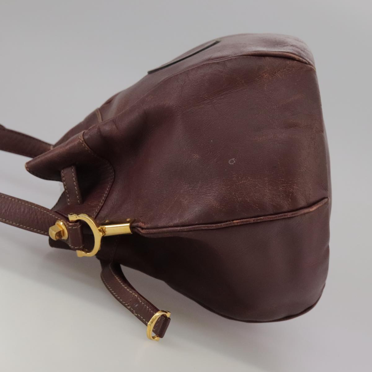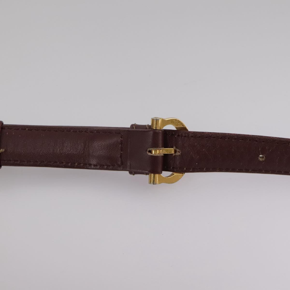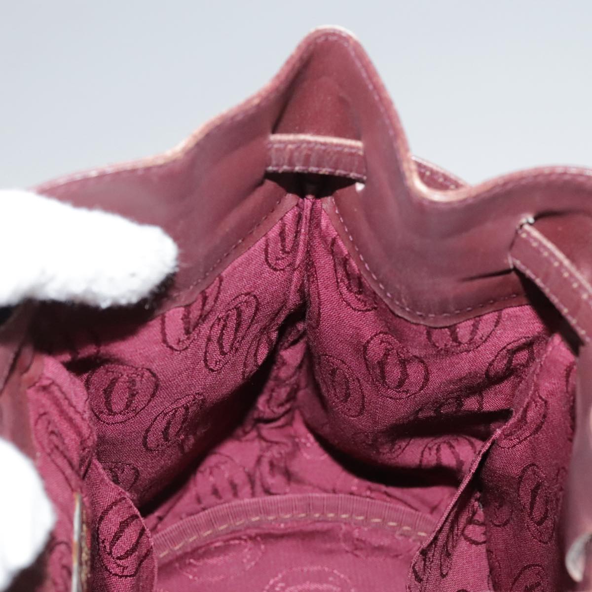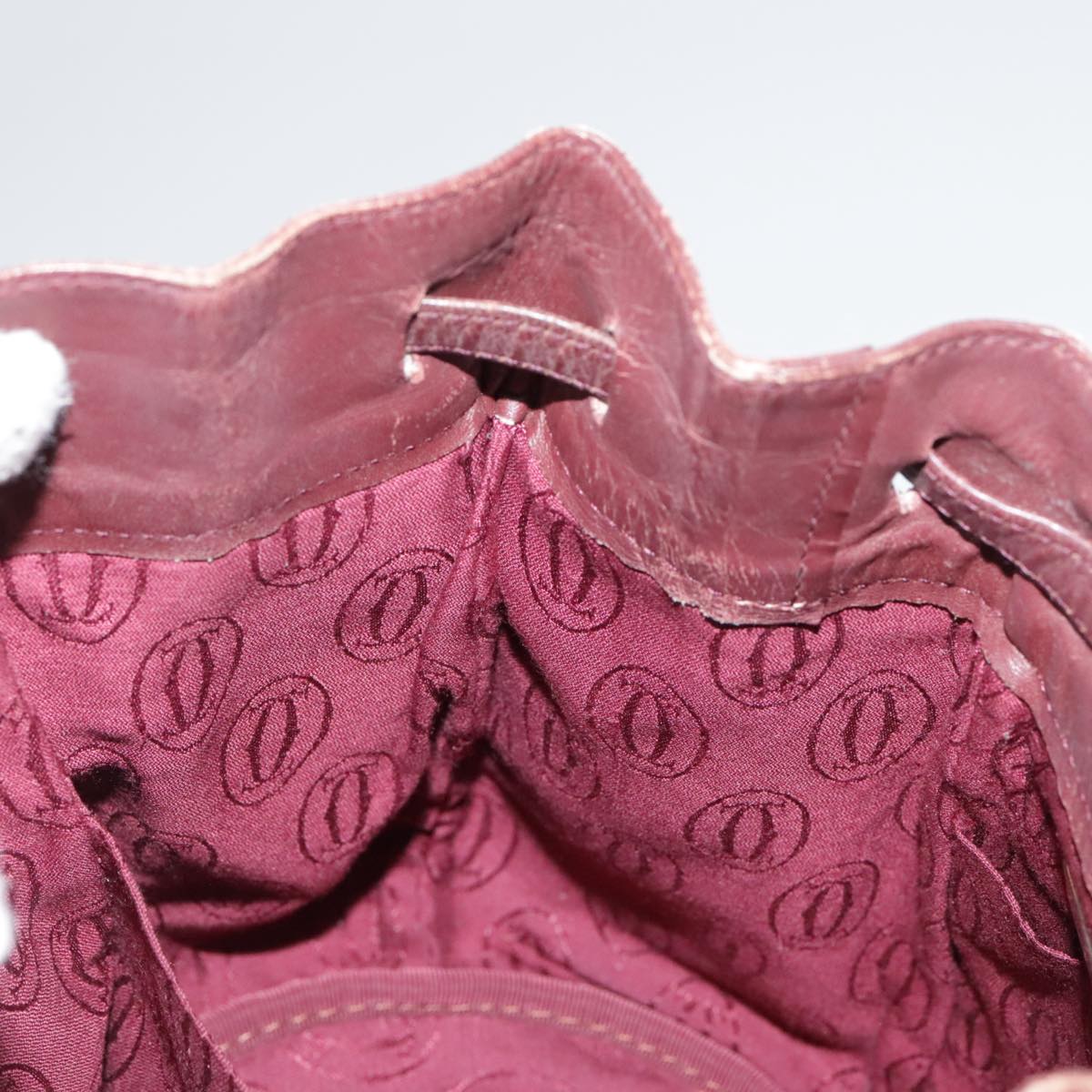 CARTIER Shoulder Bag Leather Bordeaux Gold Auth fm4247