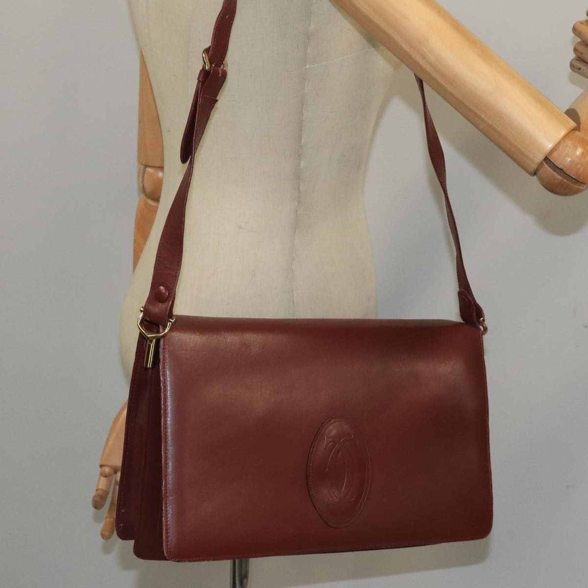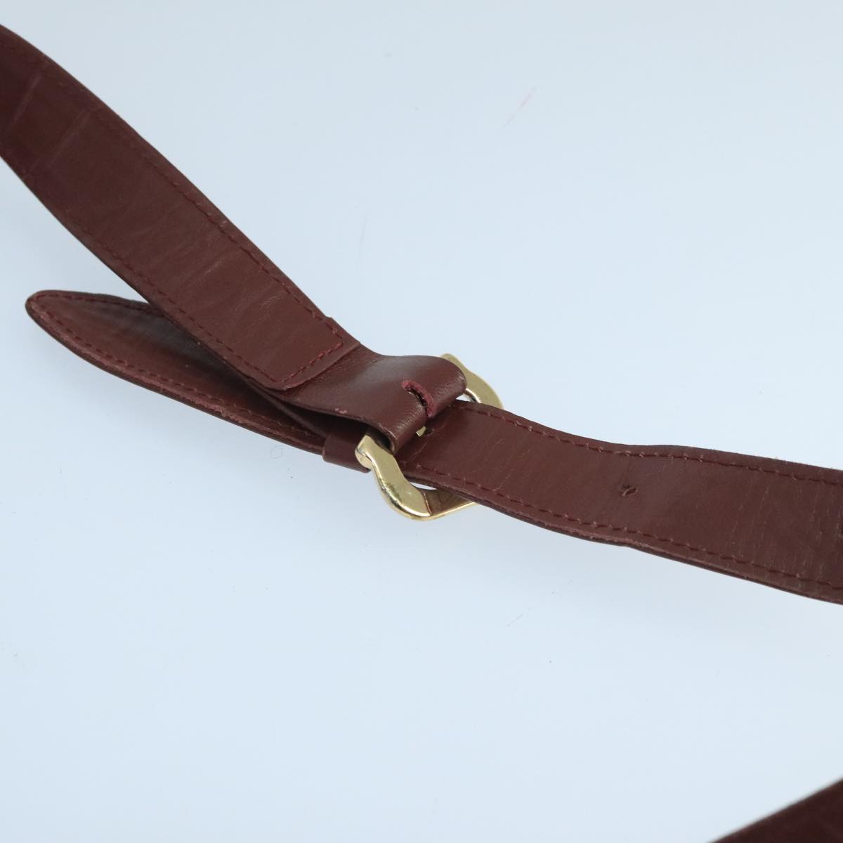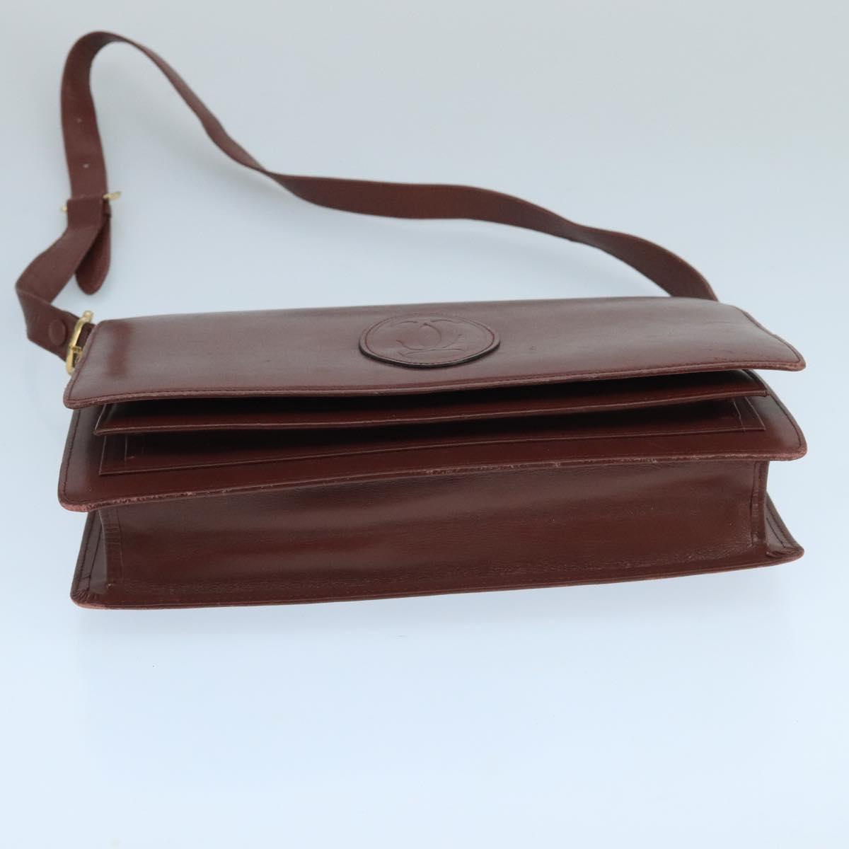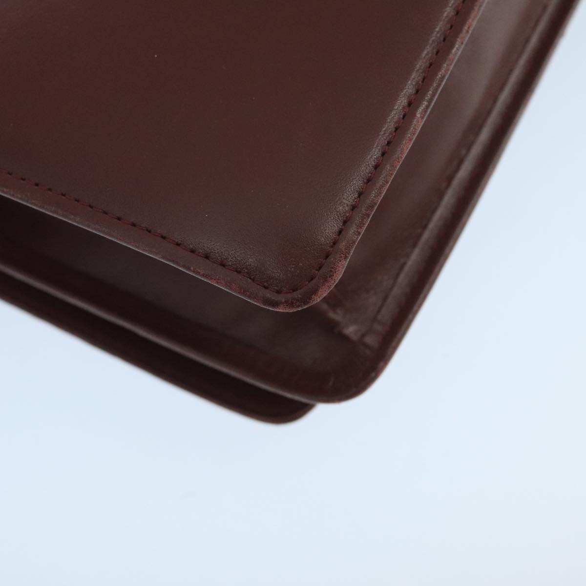 CARTIER Shoulder Bag Leather Bordeaux Gold Auth mr785