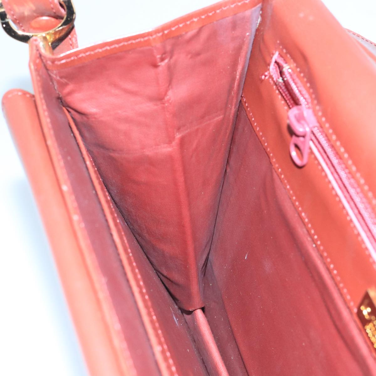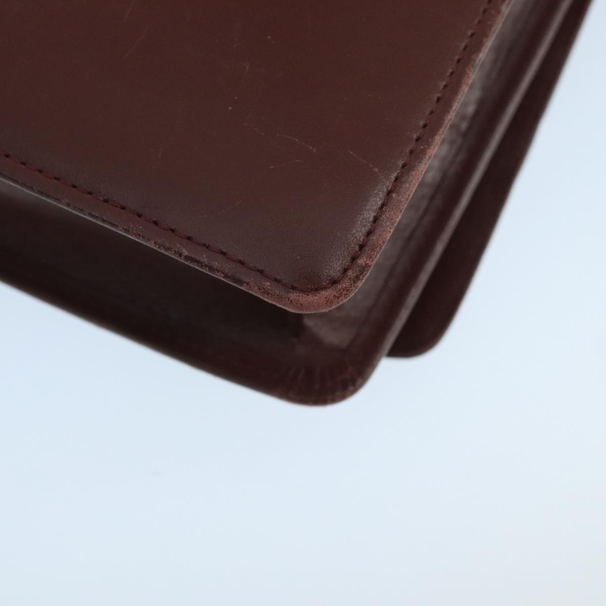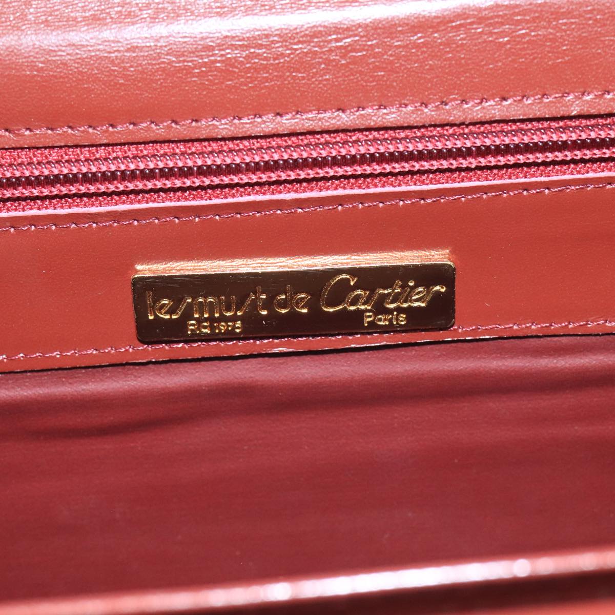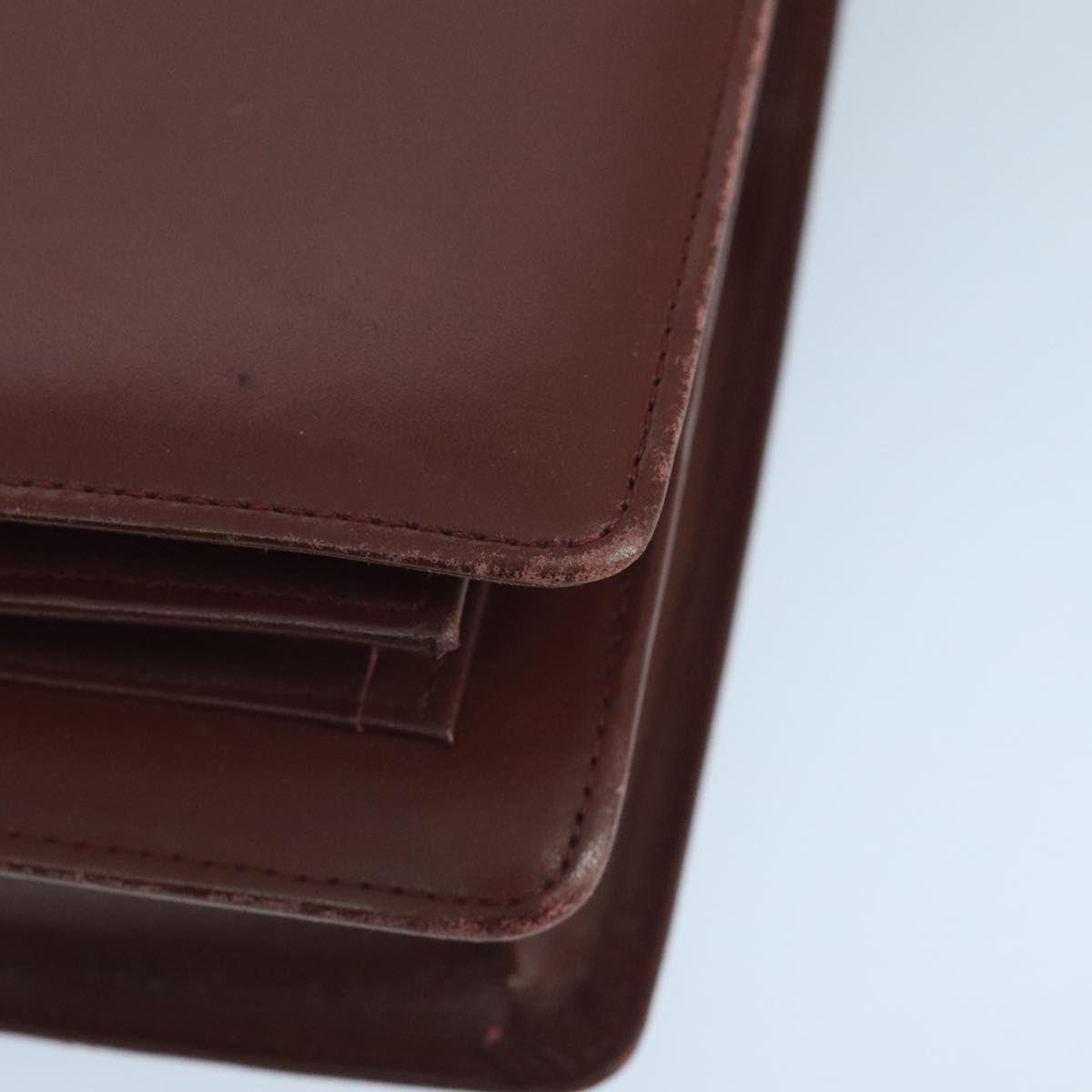 CARTIER Shoulder Bag Leather Bordeaux Gold Auth mr785