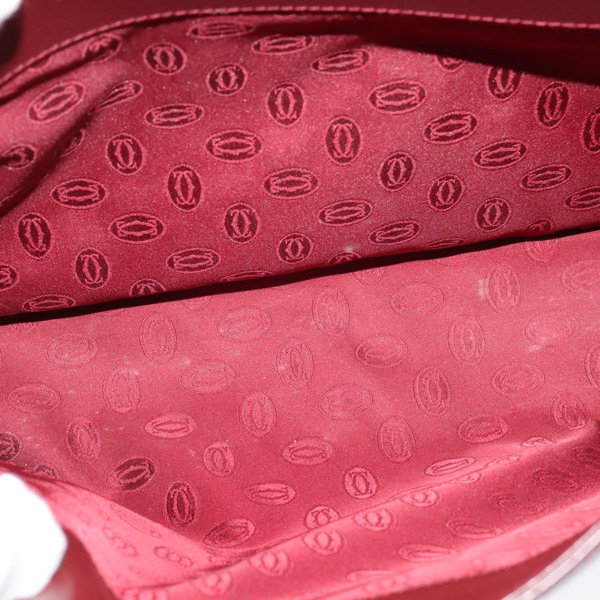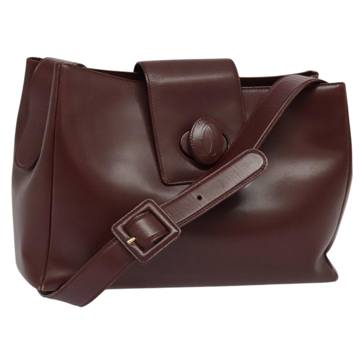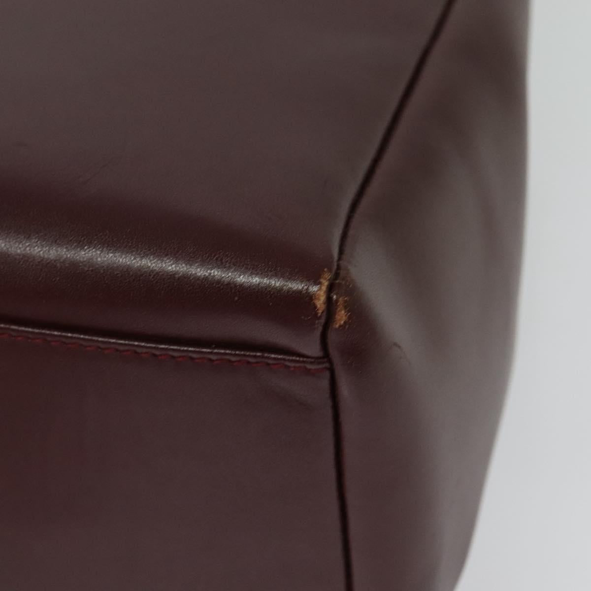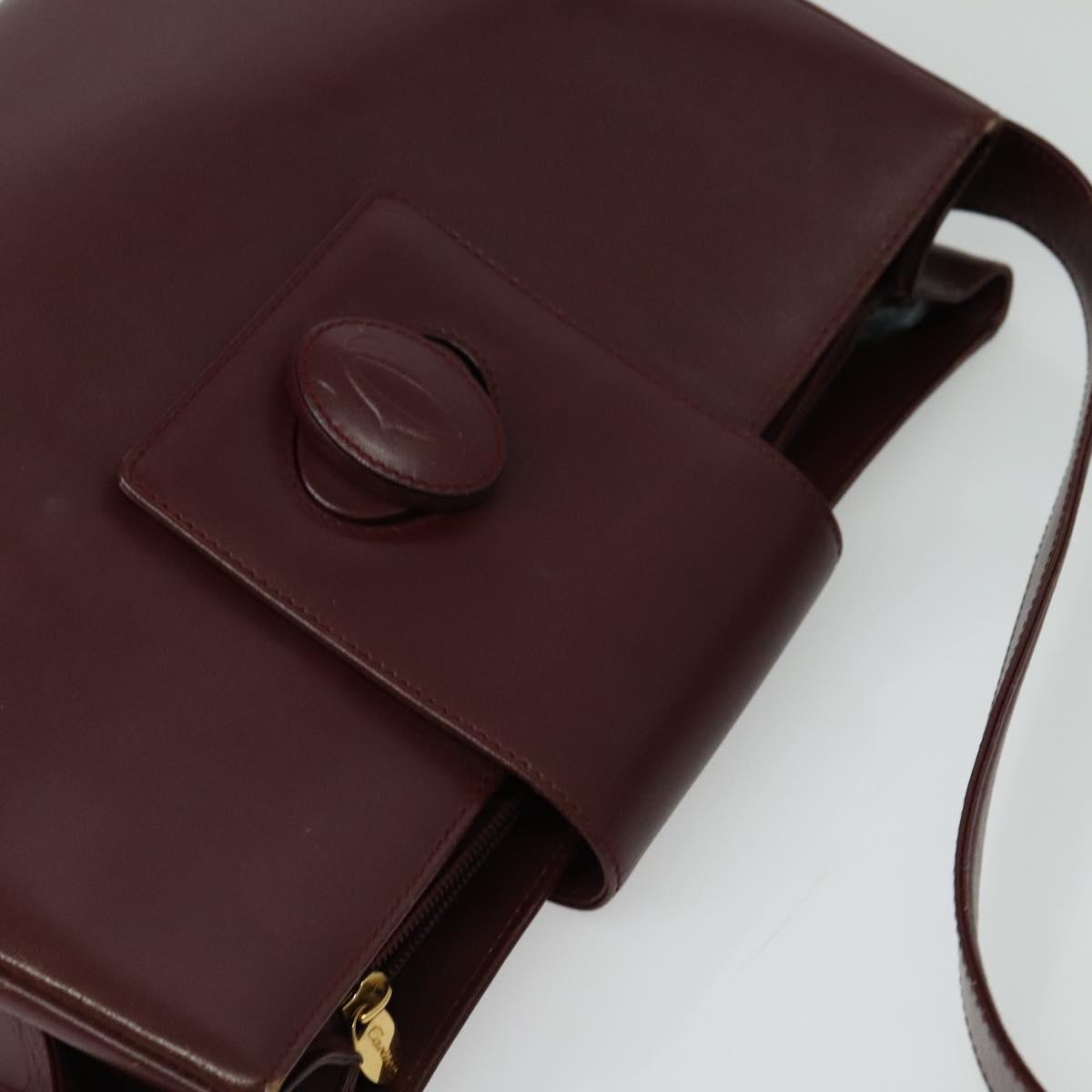 CARTIER Shoulder Bag Leather Bordeaux Gold Auth th6259