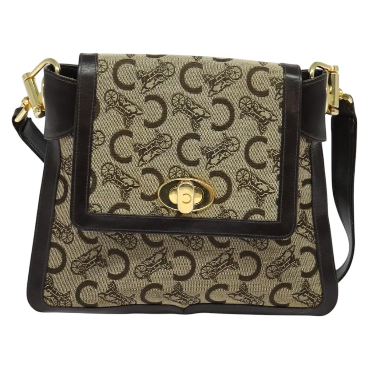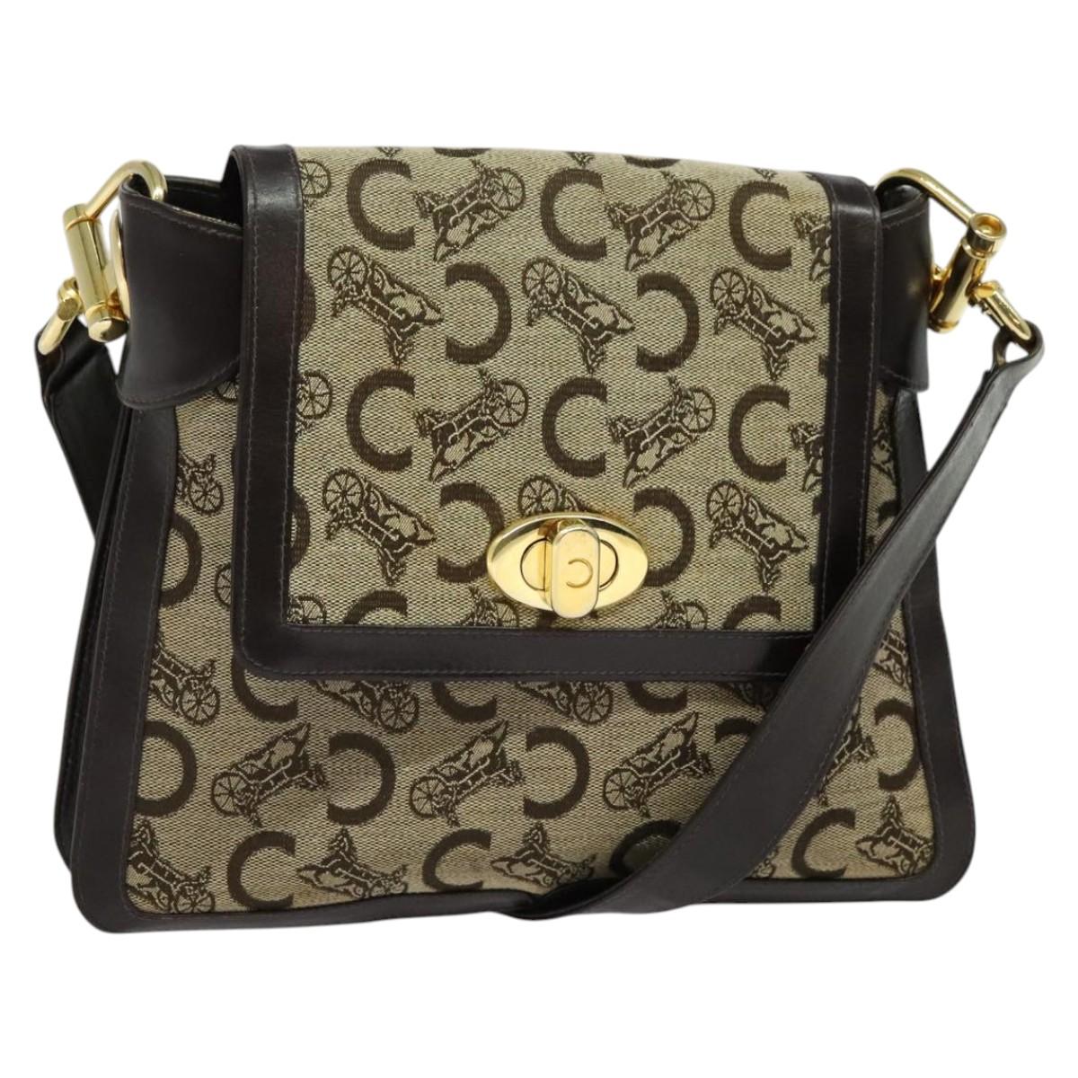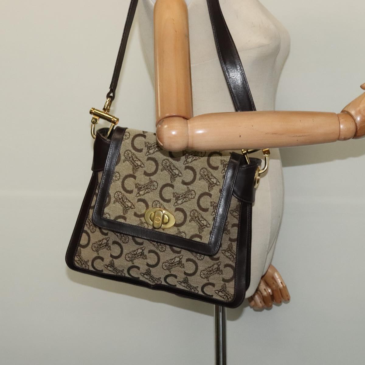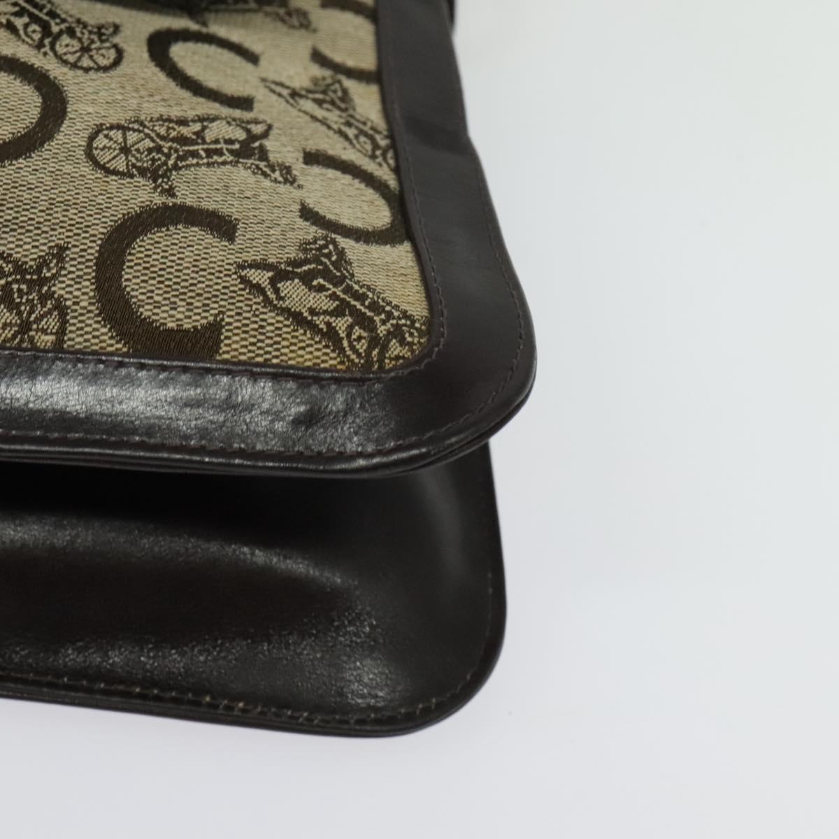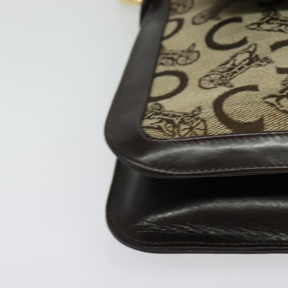 CELINE C Sulky Shoulder Bag Canvas Beige Gold Auth 140291