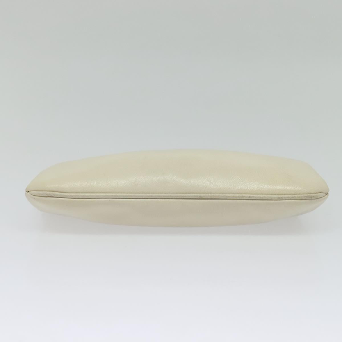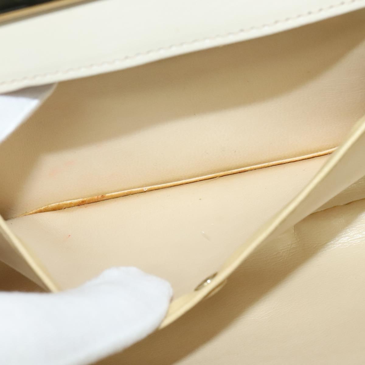 CELINE Chain Shoulder Bag Leather Vintage White Gold Auth BA5291