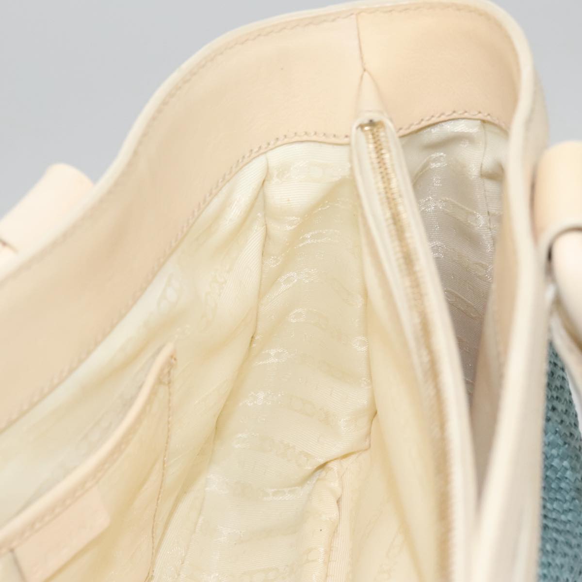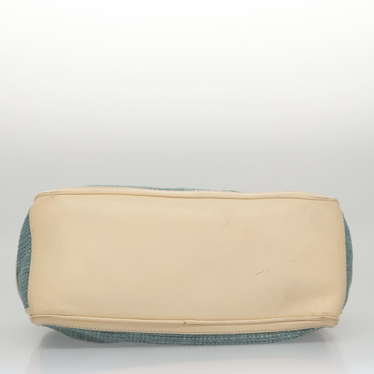 CELINE Hand Bag Straw Leather Blue Cream Gold Auth 103294