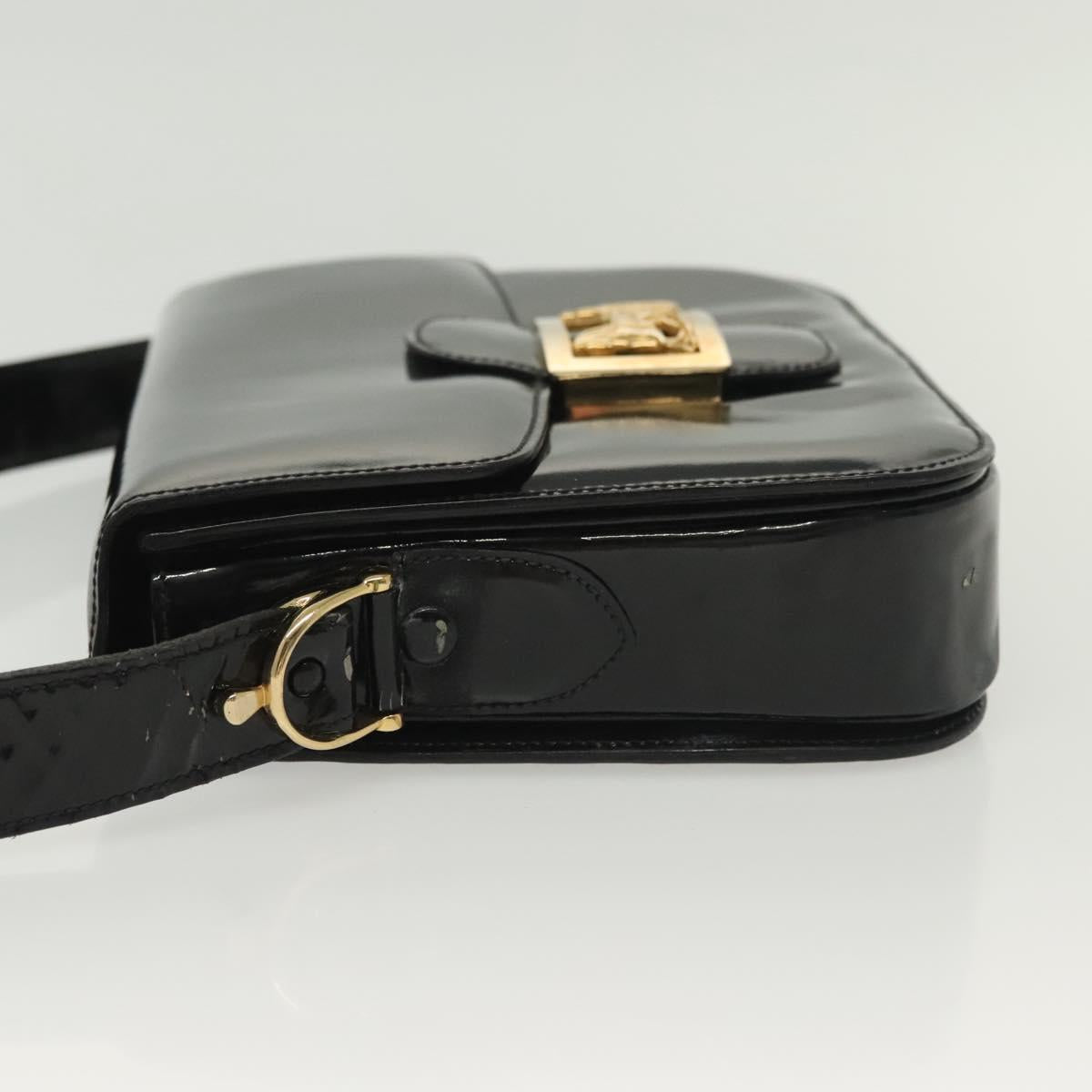CELINE Horse Carriage Shoulder Bag Patent leather Black Gold Auth 142247