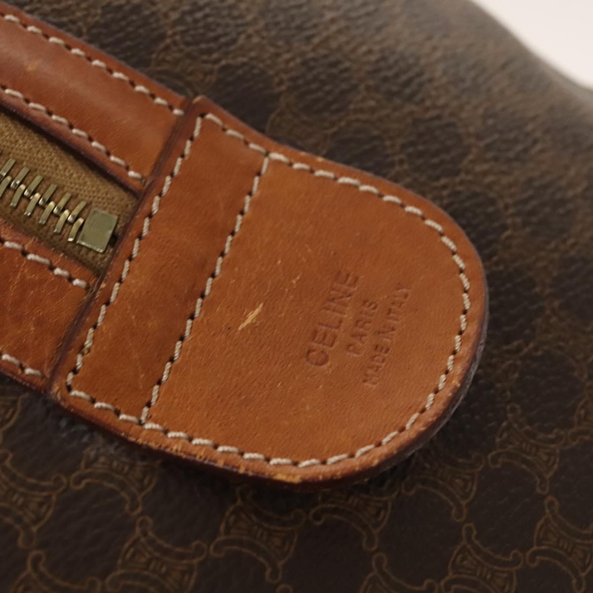 CELINE Macadam Canvas Boston Bag PVC Brown Gold Auth gh671