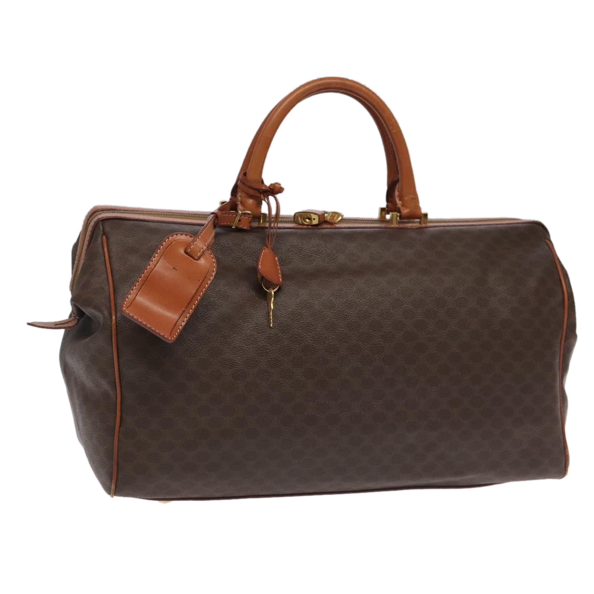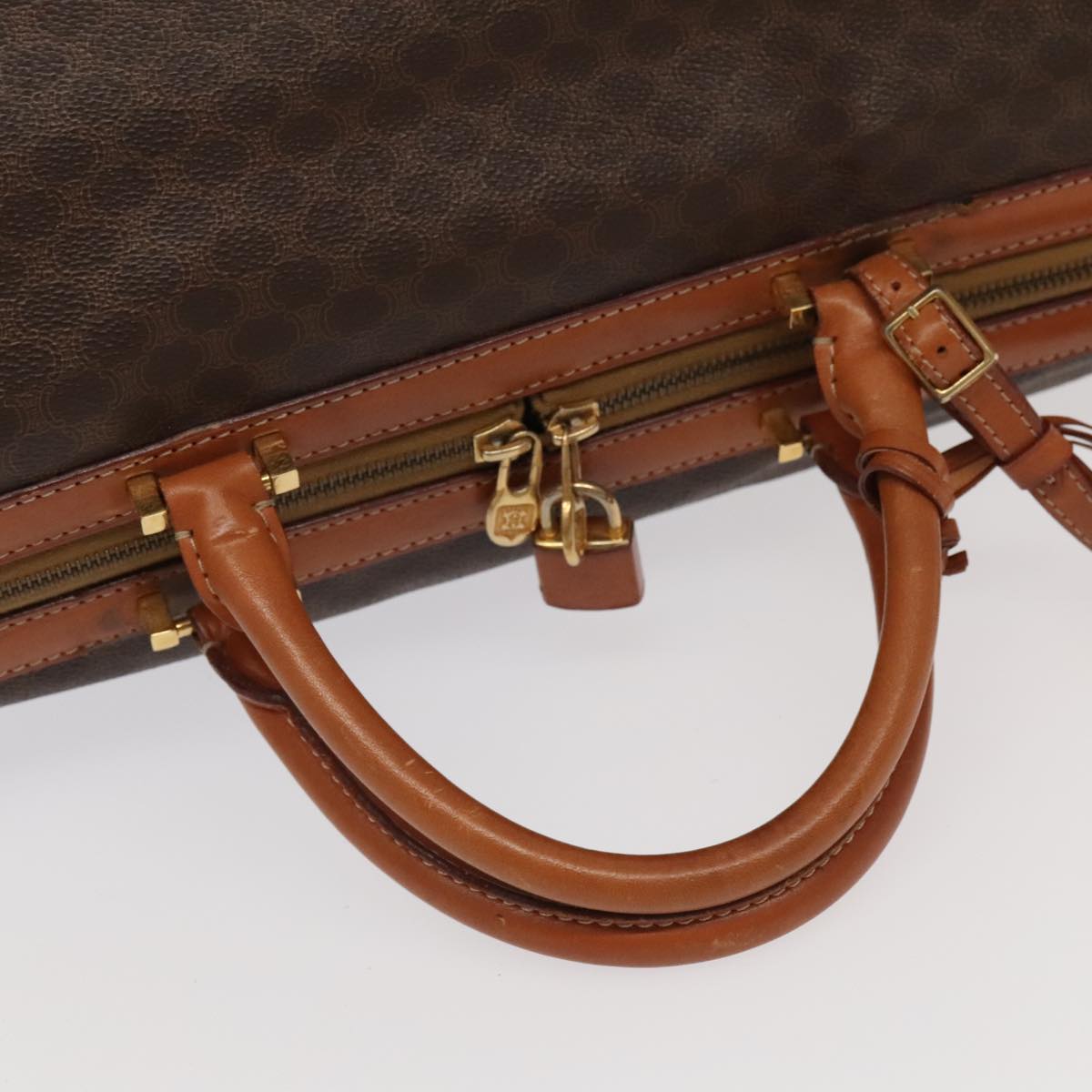 CELINE Macadam Canvas Boston Bag PVC Leather Brown Gold Auth 99360