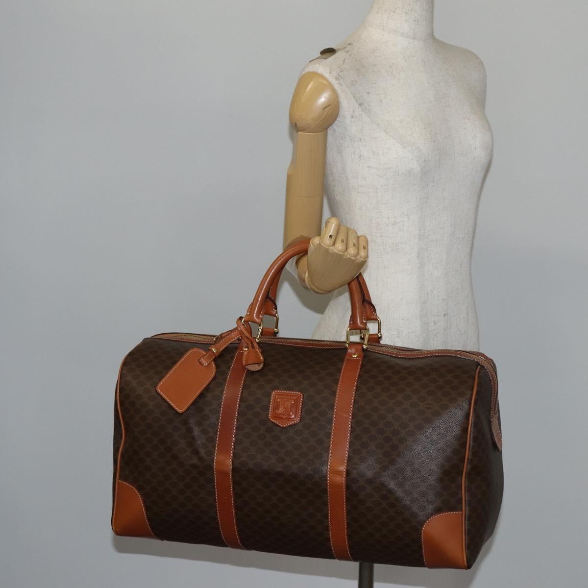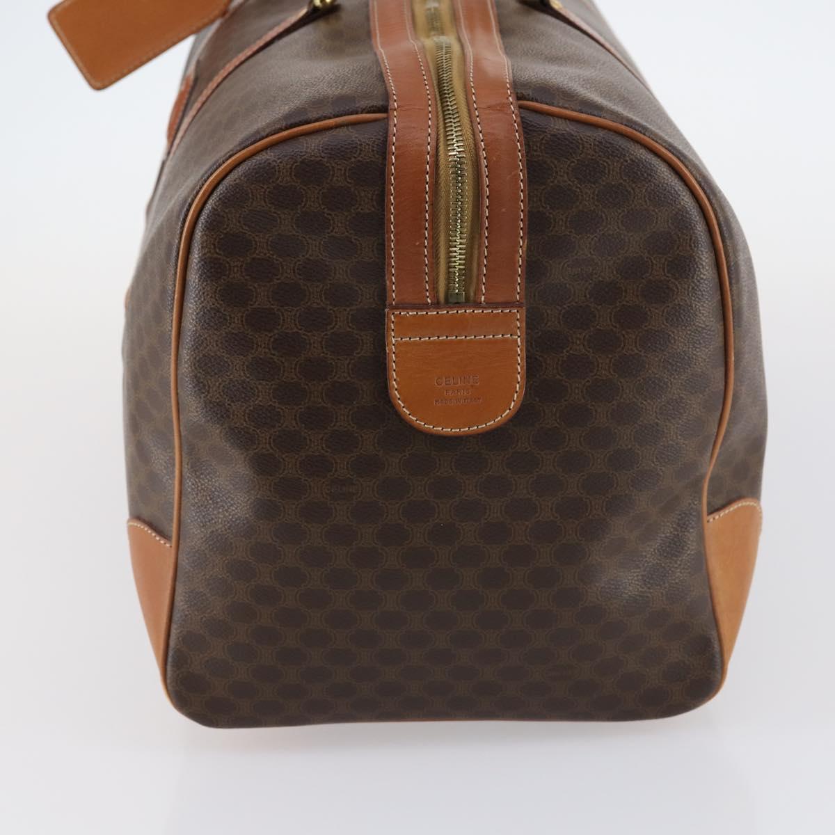 CELINE Macadam Canvas Boston Bag PVC Leather Brown Gold Auth SW1552