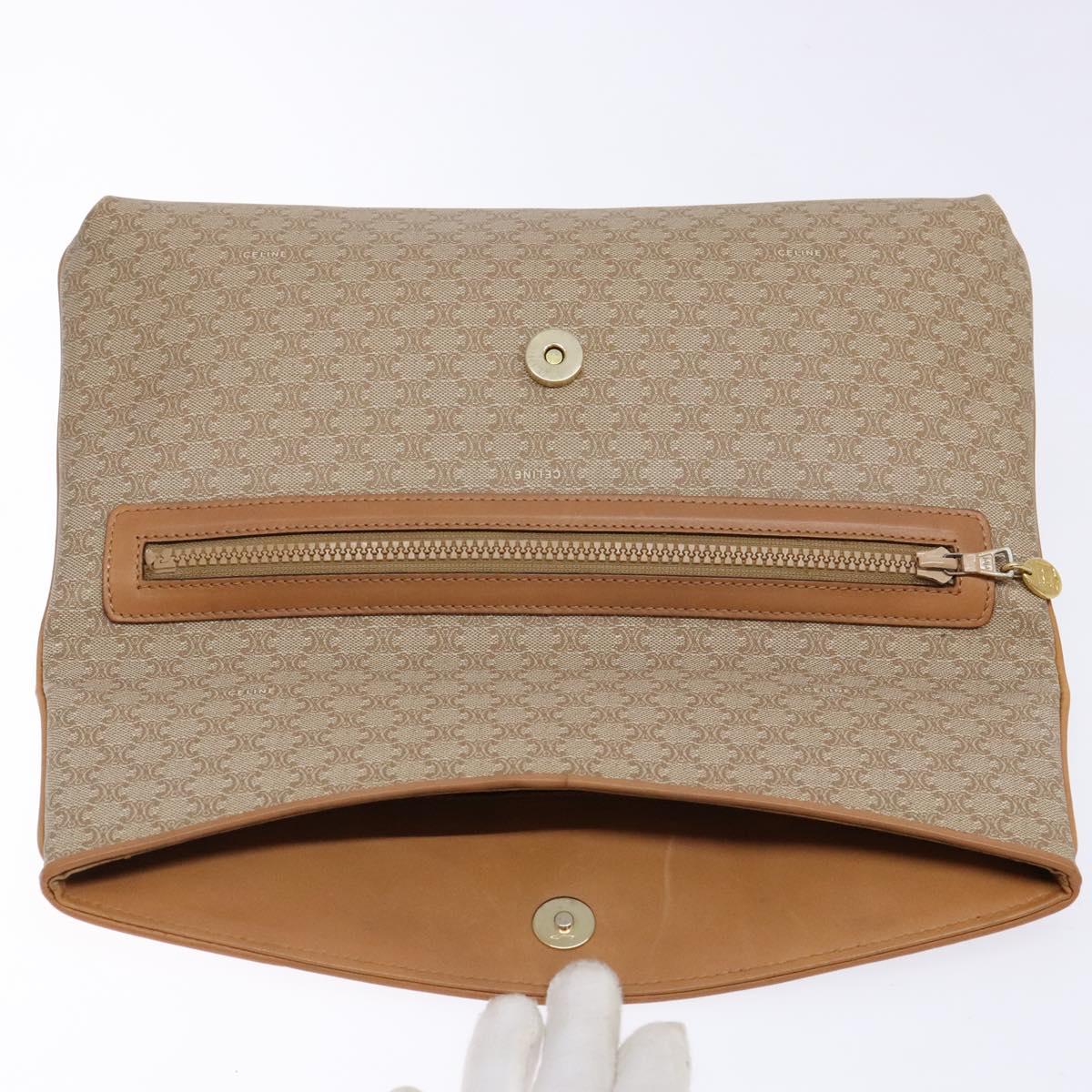 CELINE Macadam Canvas Clutch Bag PVC Beige Gold Auth gh557