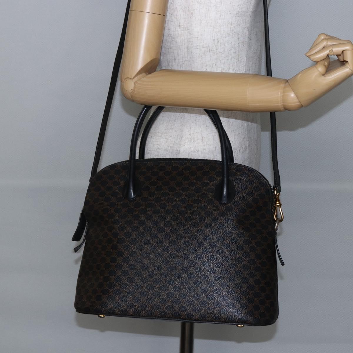 CELINE Macadam Canvas Hand Bag PVC Leather 2way Black Gold Auth ep11119