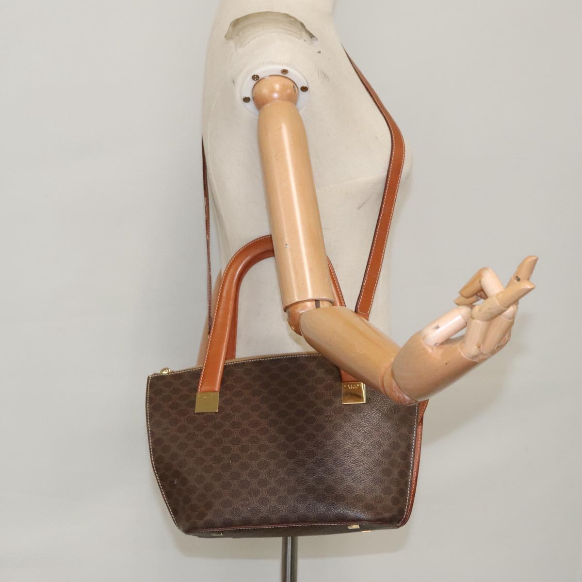 CELINE Macadam Canvas Hand Bag PVC Leather 2way Brown Gold Auth 102157