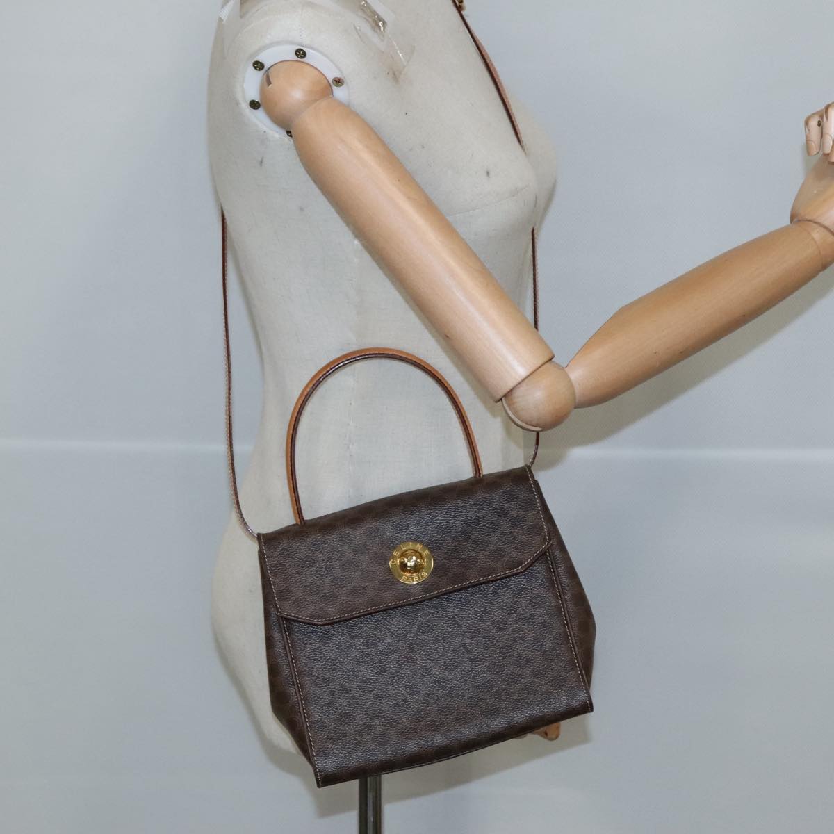 CELINE Macadam Canvas Hand Bag PVC Leather 2way Brown Gold Auth 102389