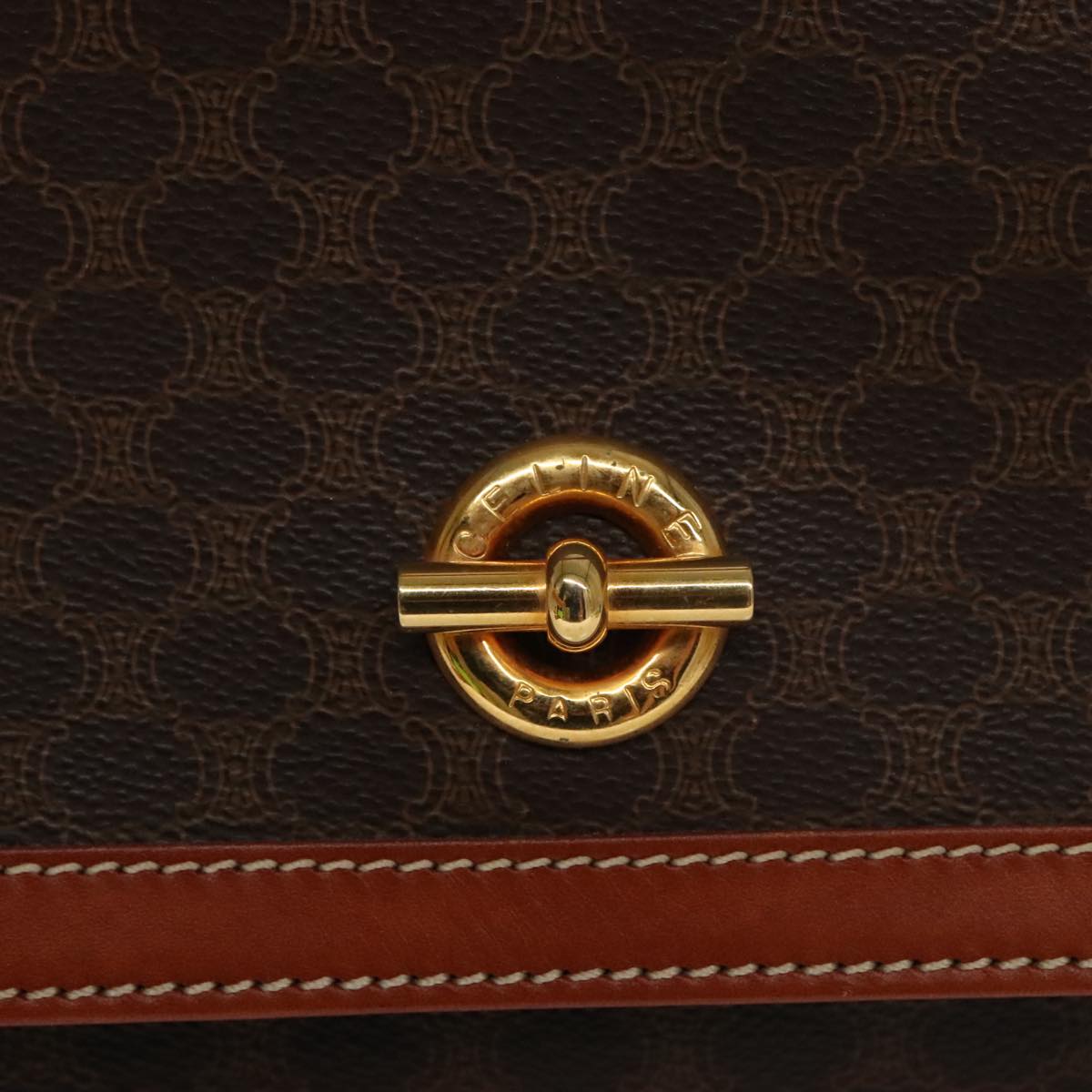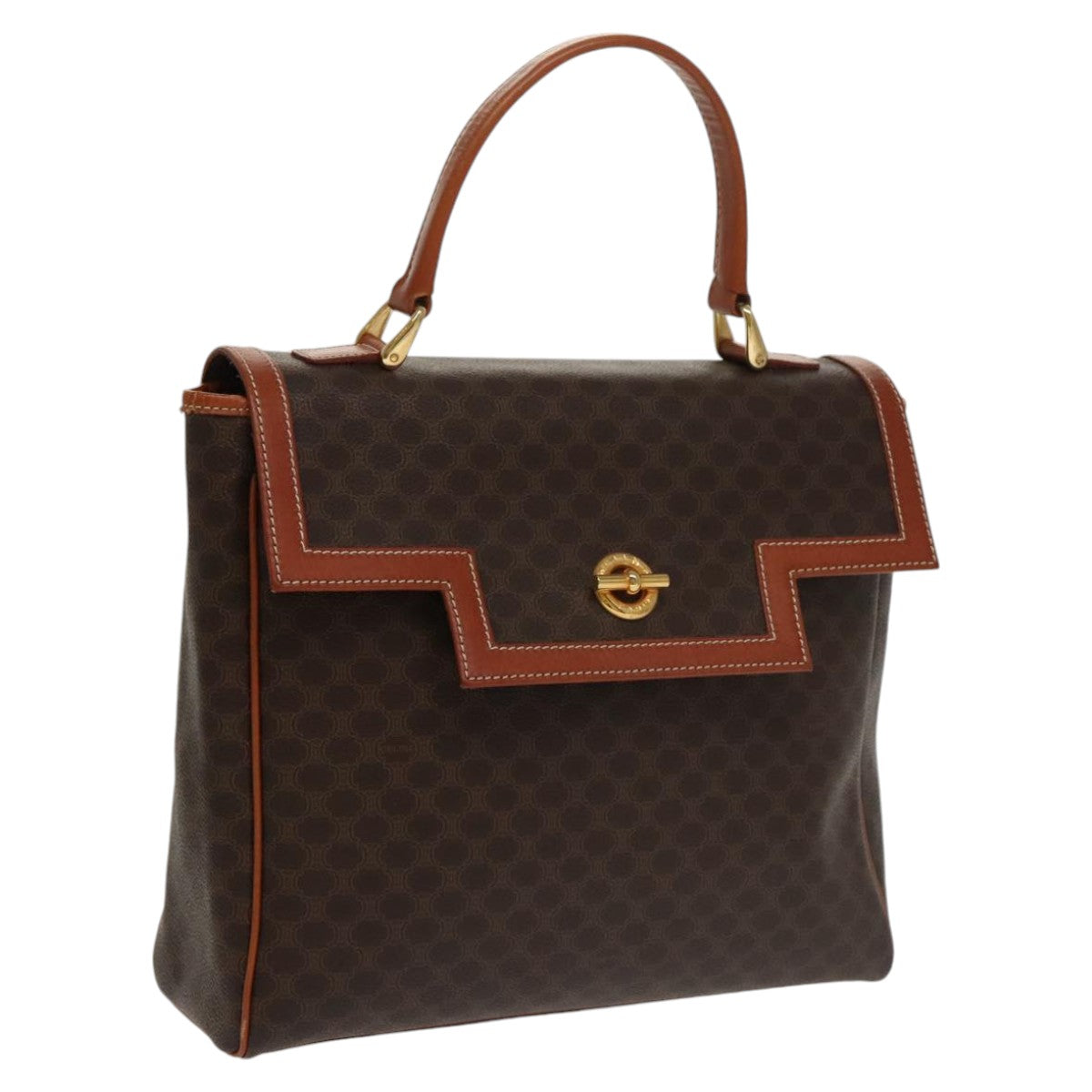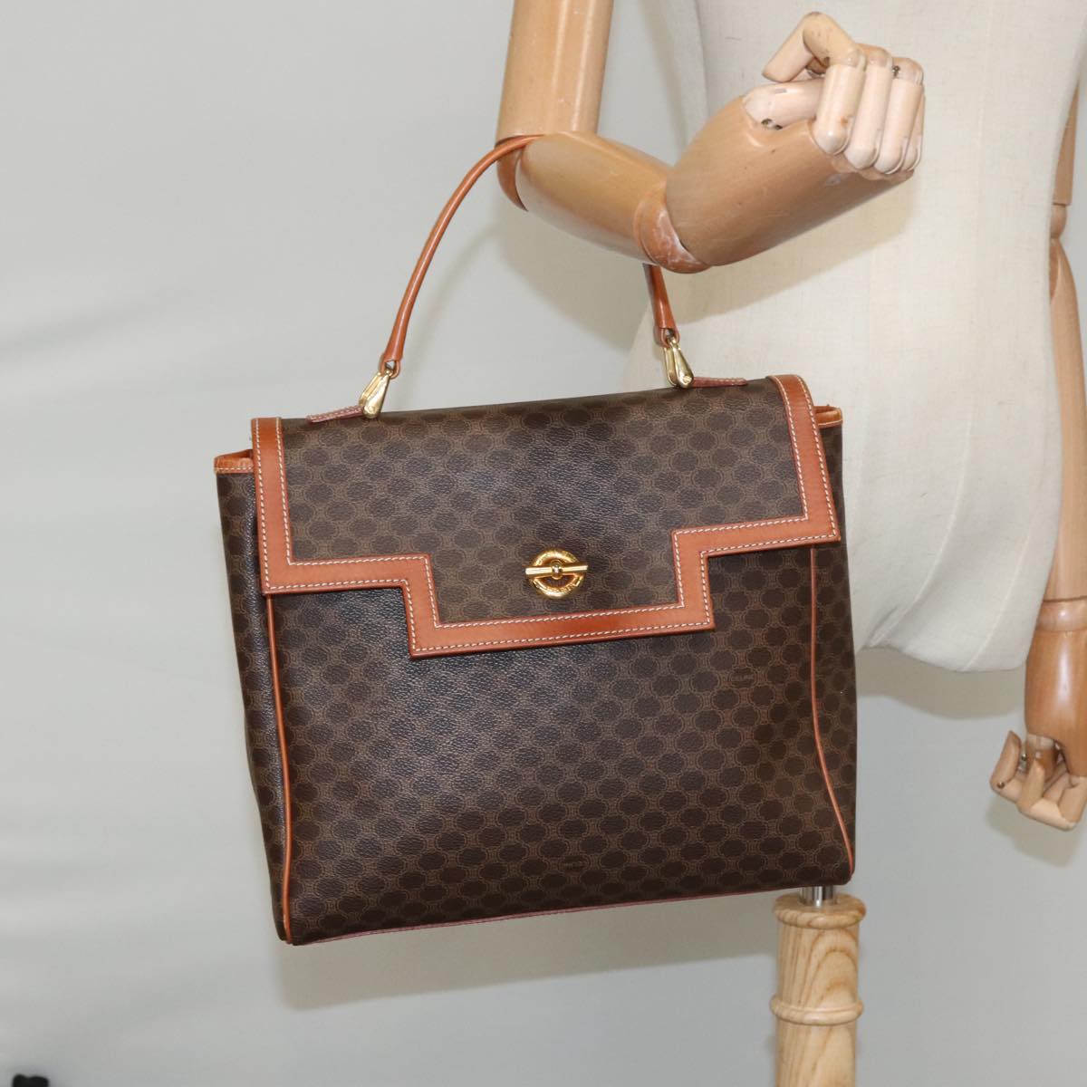 CELINE Macadam Canvas Hand Bag PVC Leather Brown Gold Auth bs20273