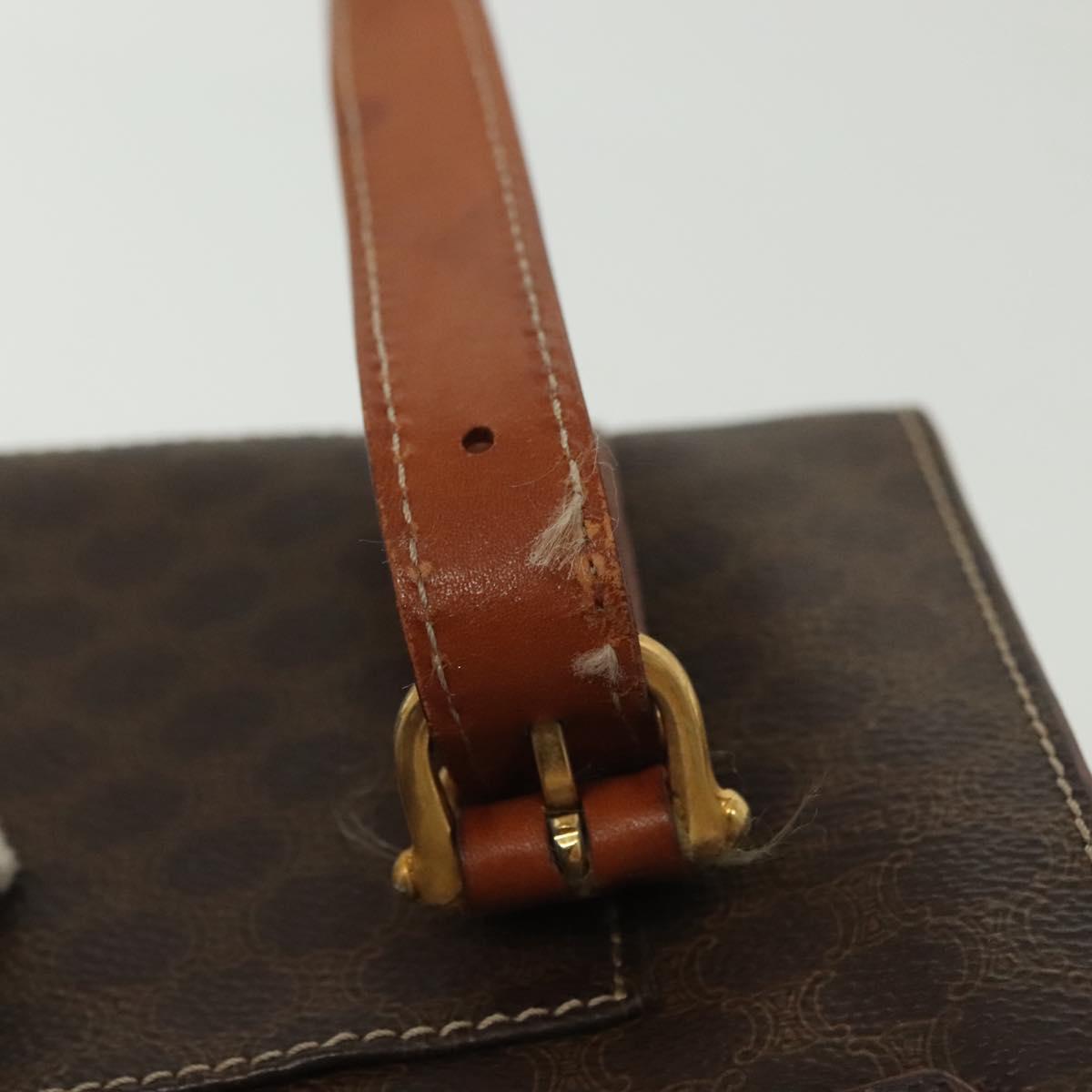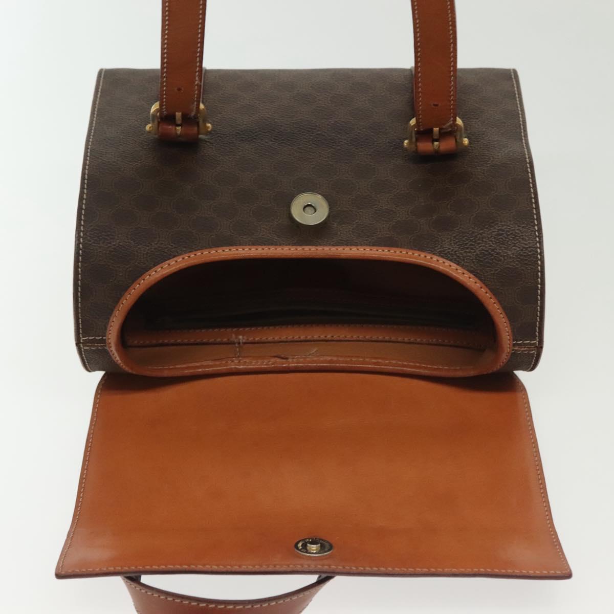 CELINE Macadam Canvas Hand Bag PVC Leather Brown Gold Auth gh739