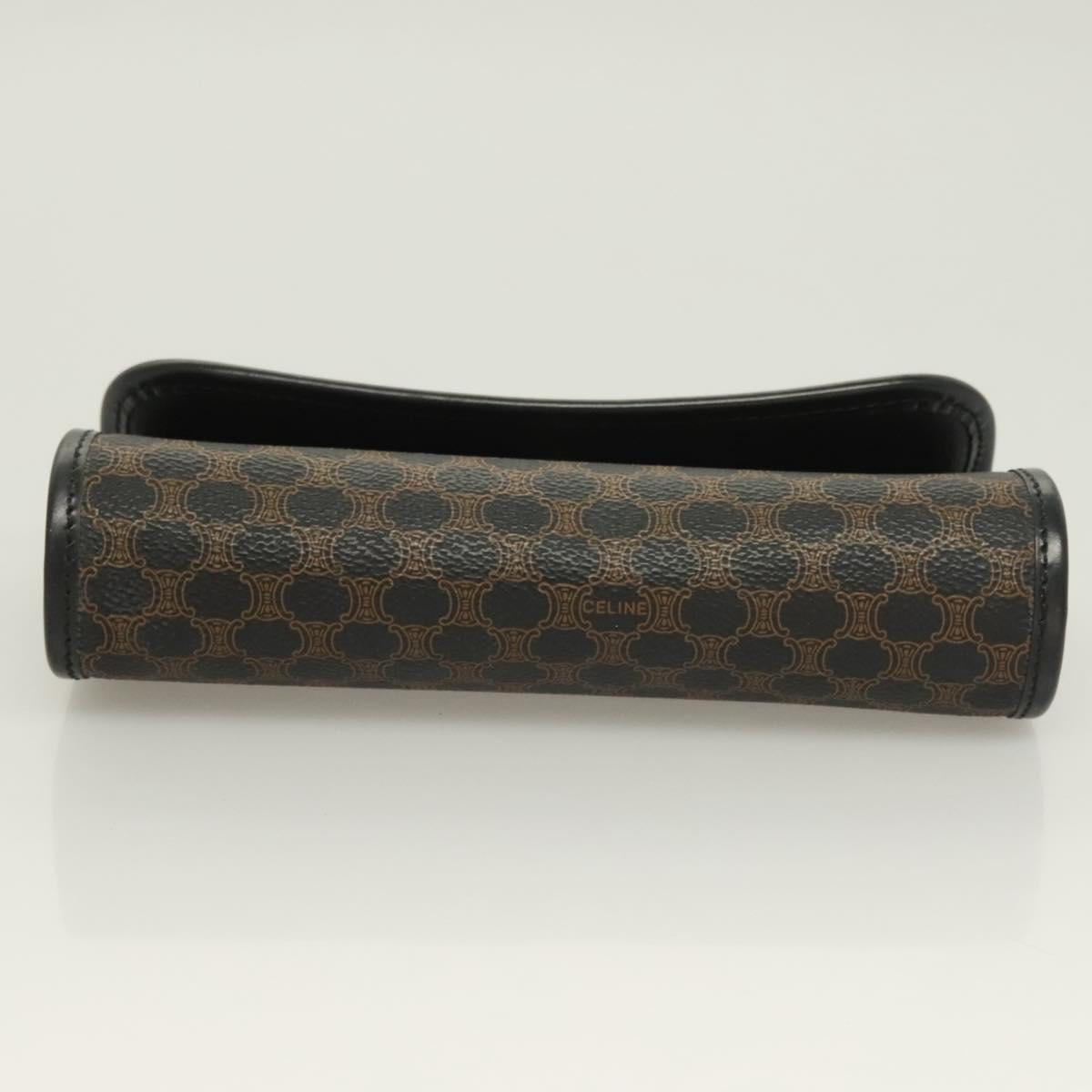 CELINE Macadam Canvas Pouch PVC Leather Black Gold Auth mr1397