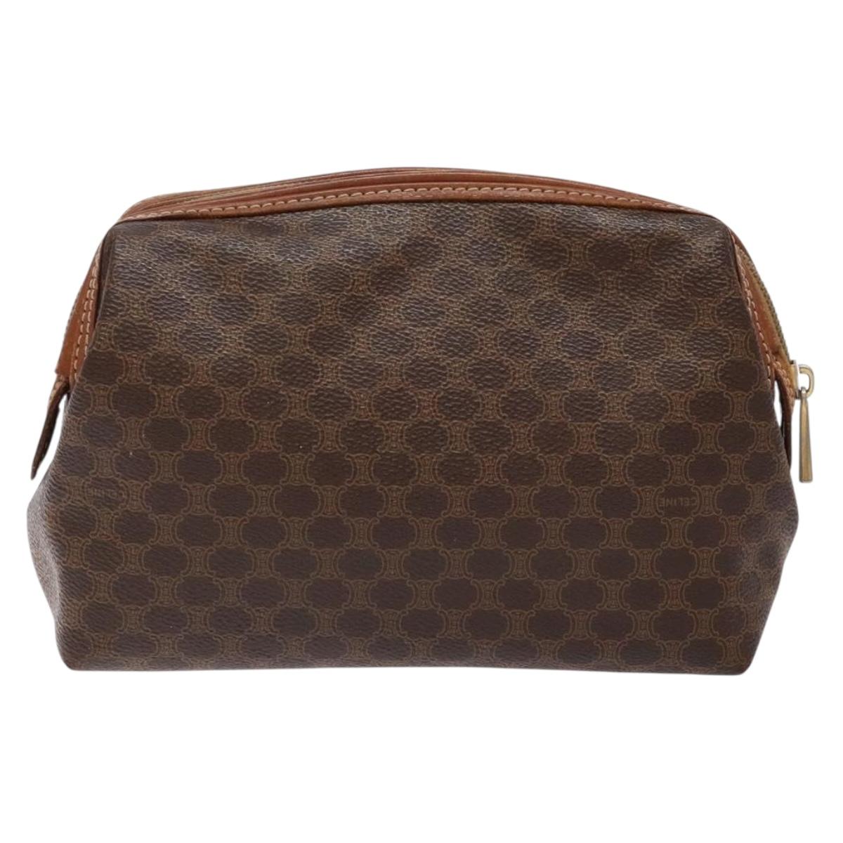 CELINE Macadam Canvas Pouch PVC Leather Brown Gold Auth sw1444