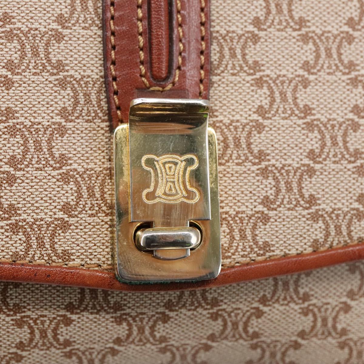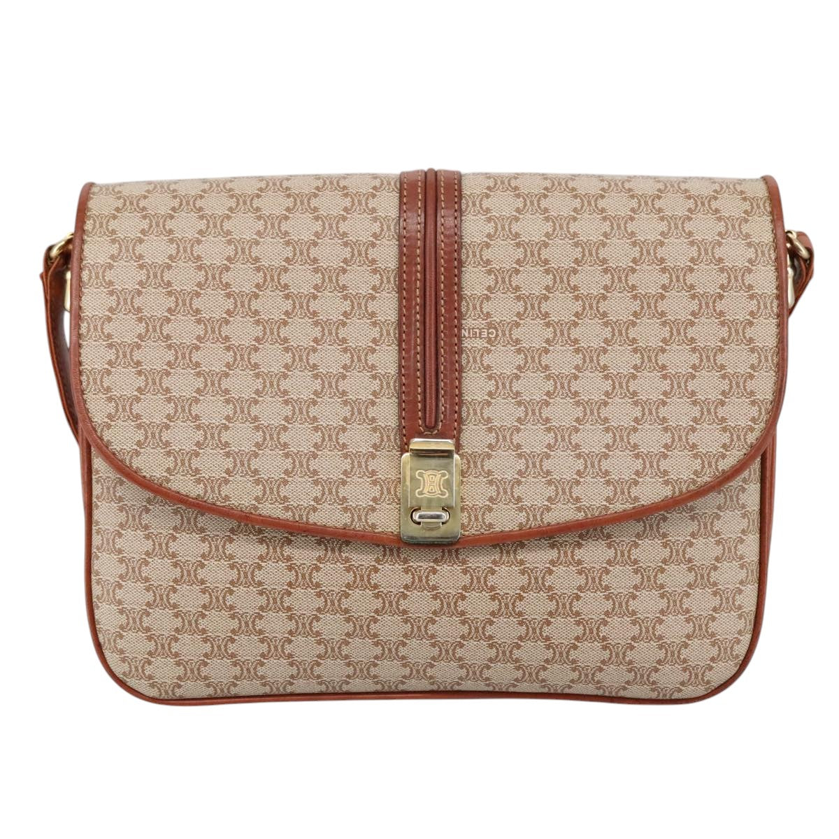 CELINE Macadam Canvas Shoulder Bag Beige Gold Auth 103336