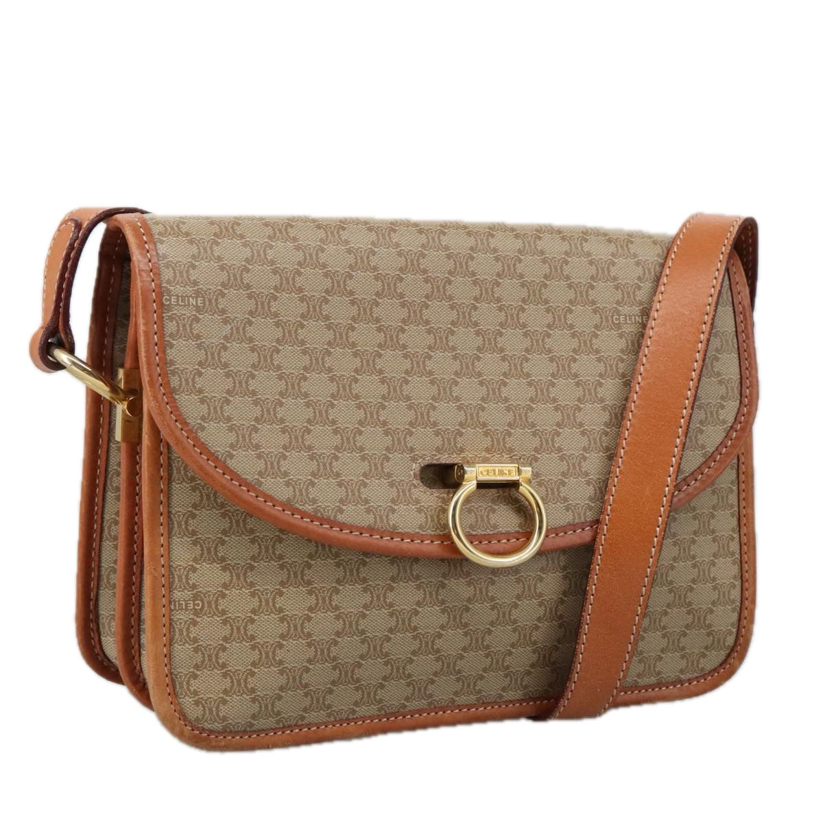 CELINE Macadam Canvas Shoulder Bag Beige Gold Auth yk15952