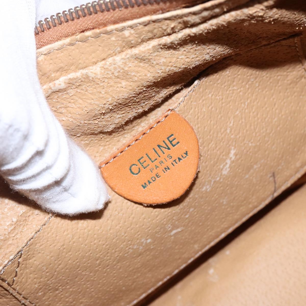 CELINE Macadam Canvas Shoulder Bag PVC Beige Gold Auth BA5337