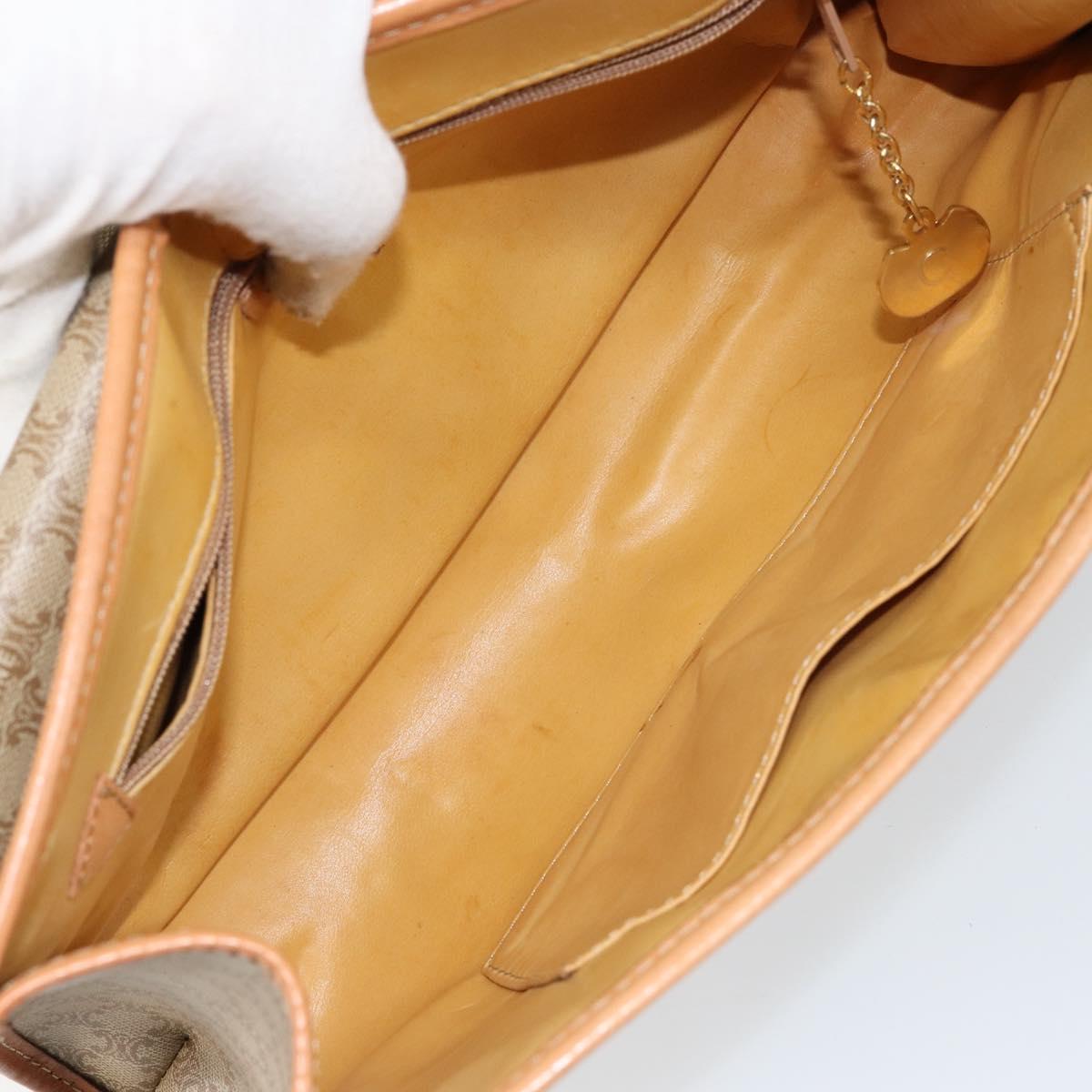CELINE Macadam Canvas Shoulder Bag PVC Beige Gold Auth BA6573