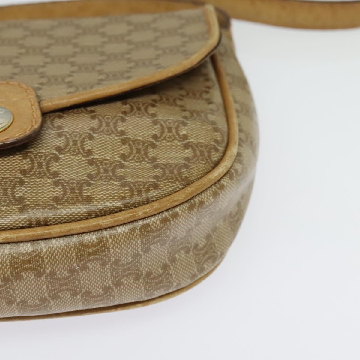 CELINE Macadam Canvas Shoulder Bag PVC Beige Gold Auth bs29271