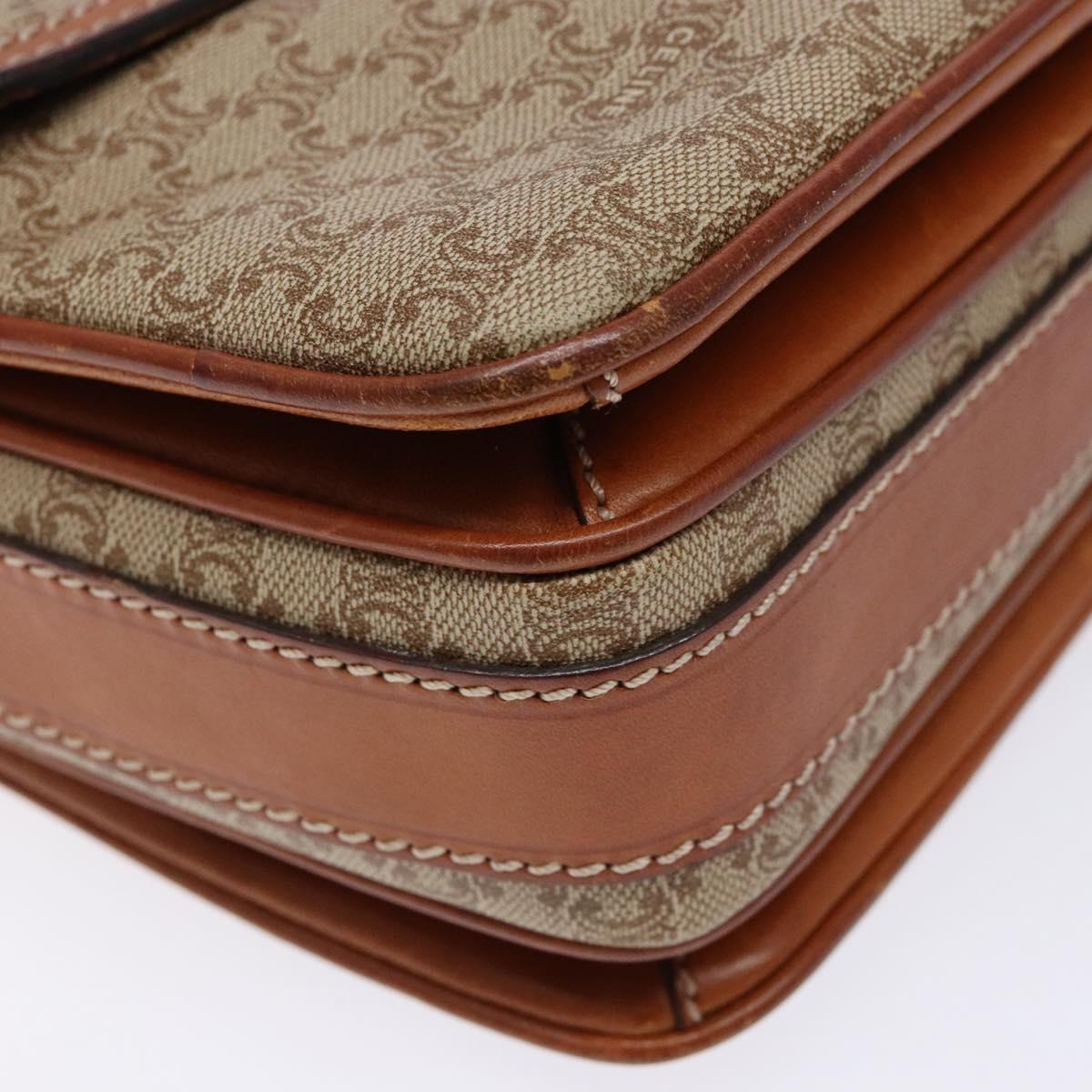 CELINE Macadam Canvas Shoulder Bag PVC Beige Gold Auth gh516