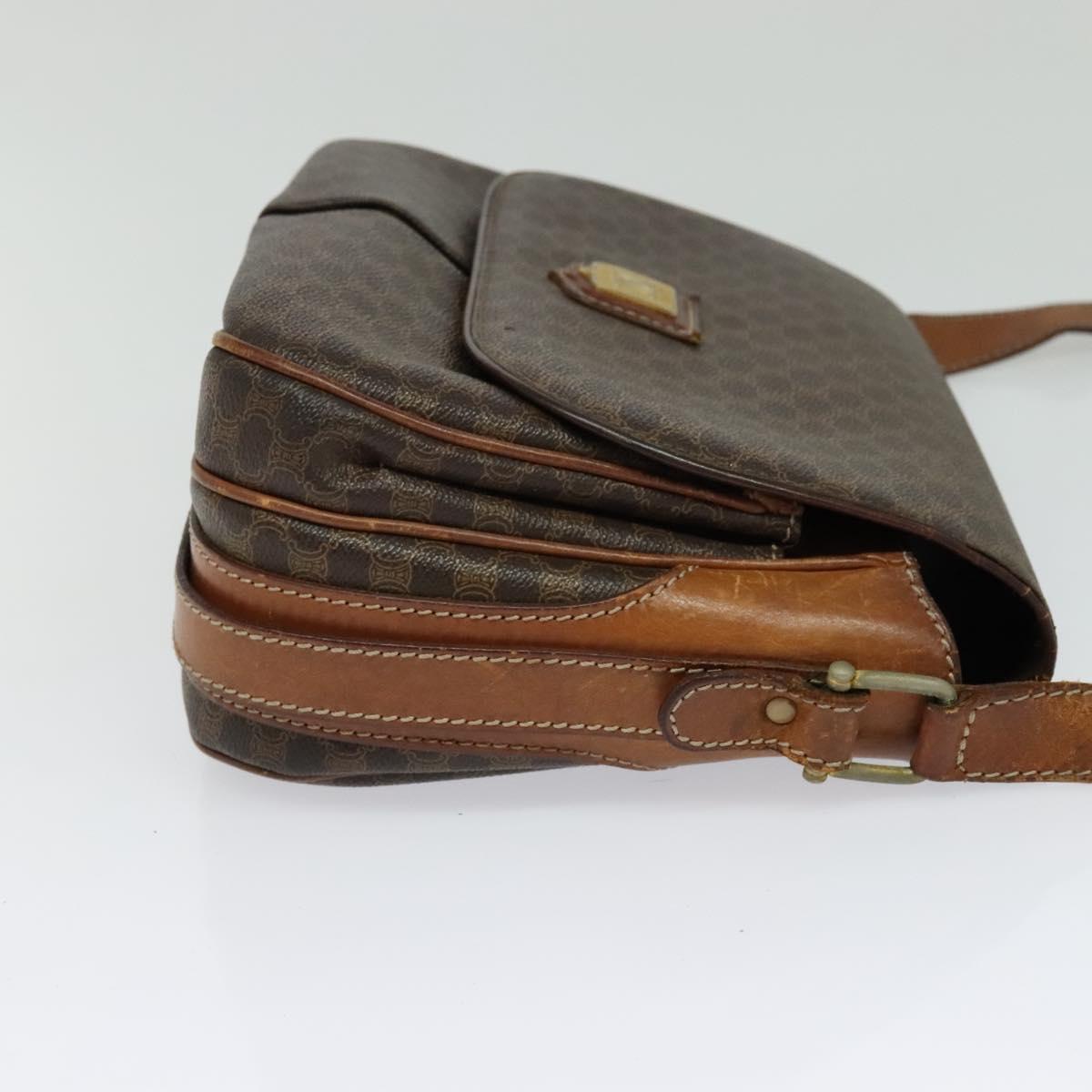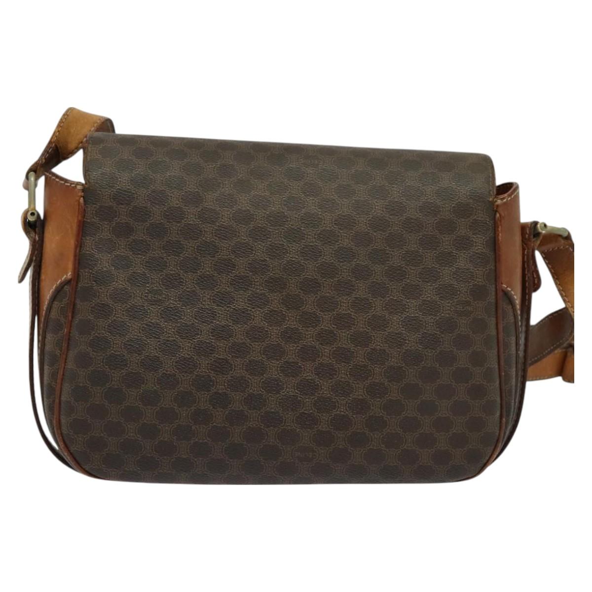 CELINE Macadam Canvas Shoulder Bag PVC Brown Gold Auth 128715