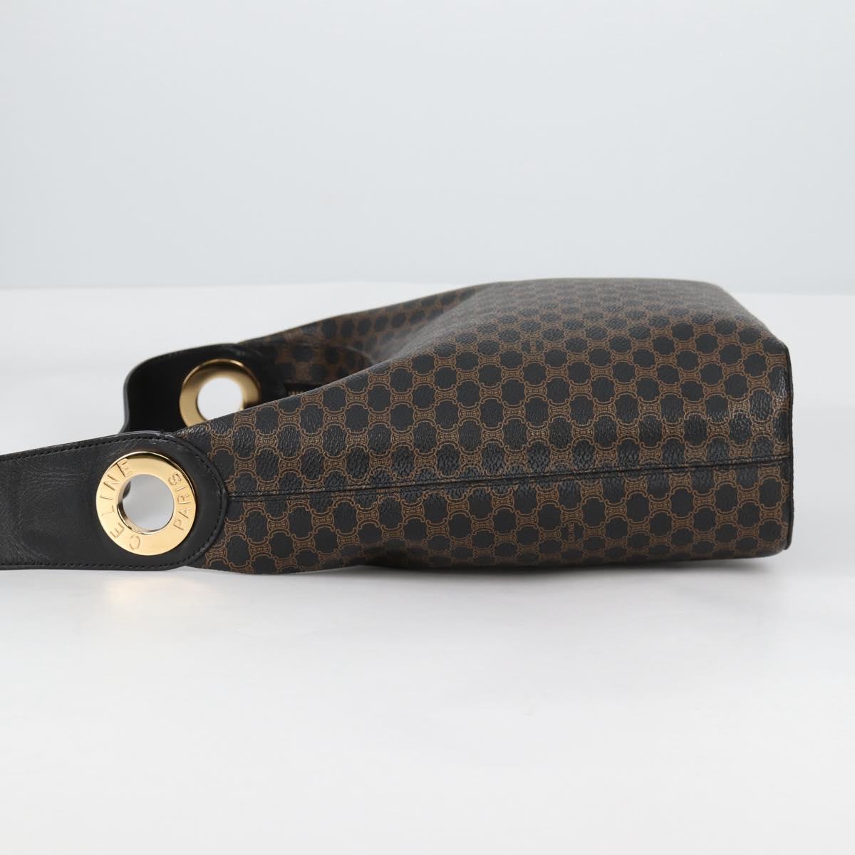CELINE Macadam Canvas Shoulder Bag PVC Leather Black Gold Auth 135205V