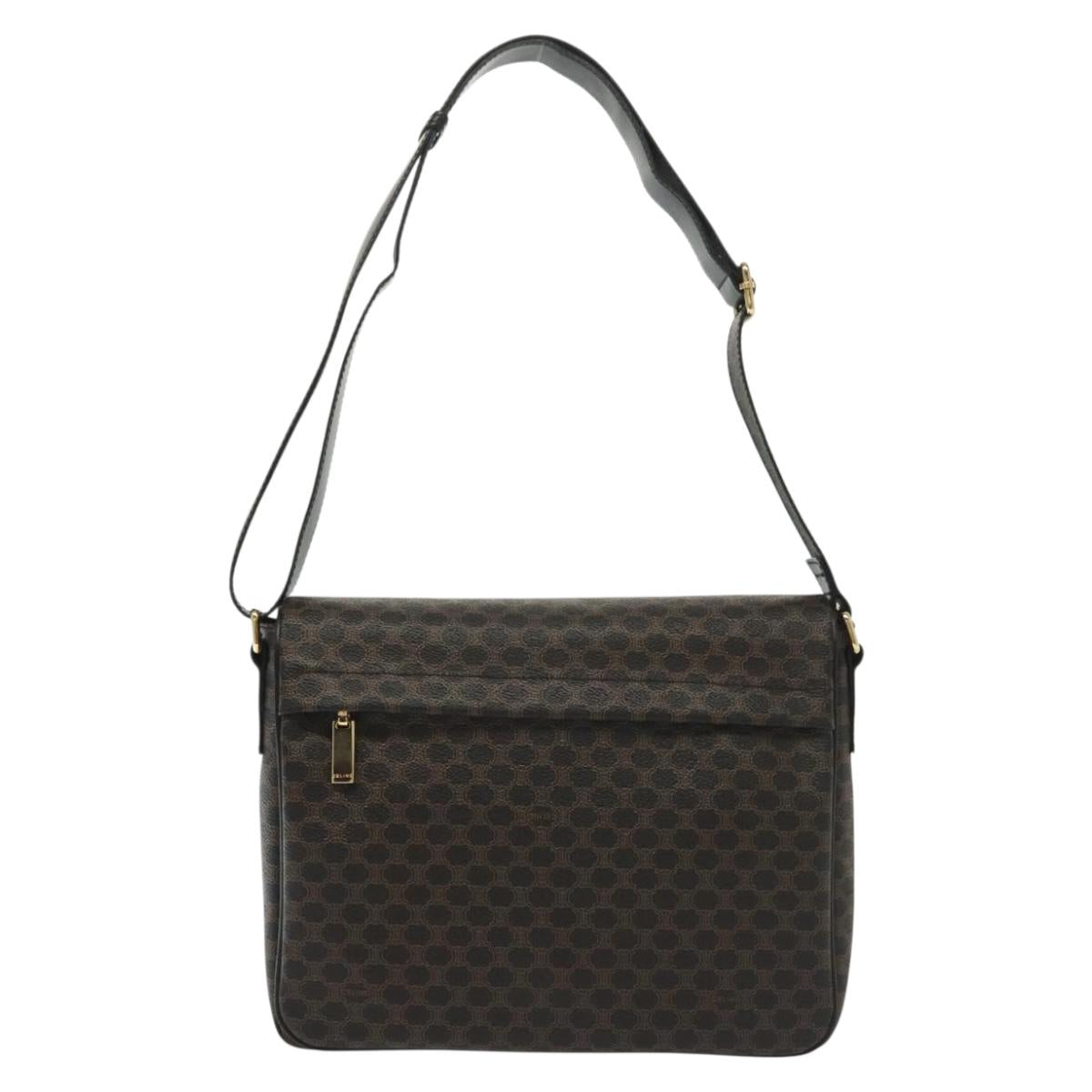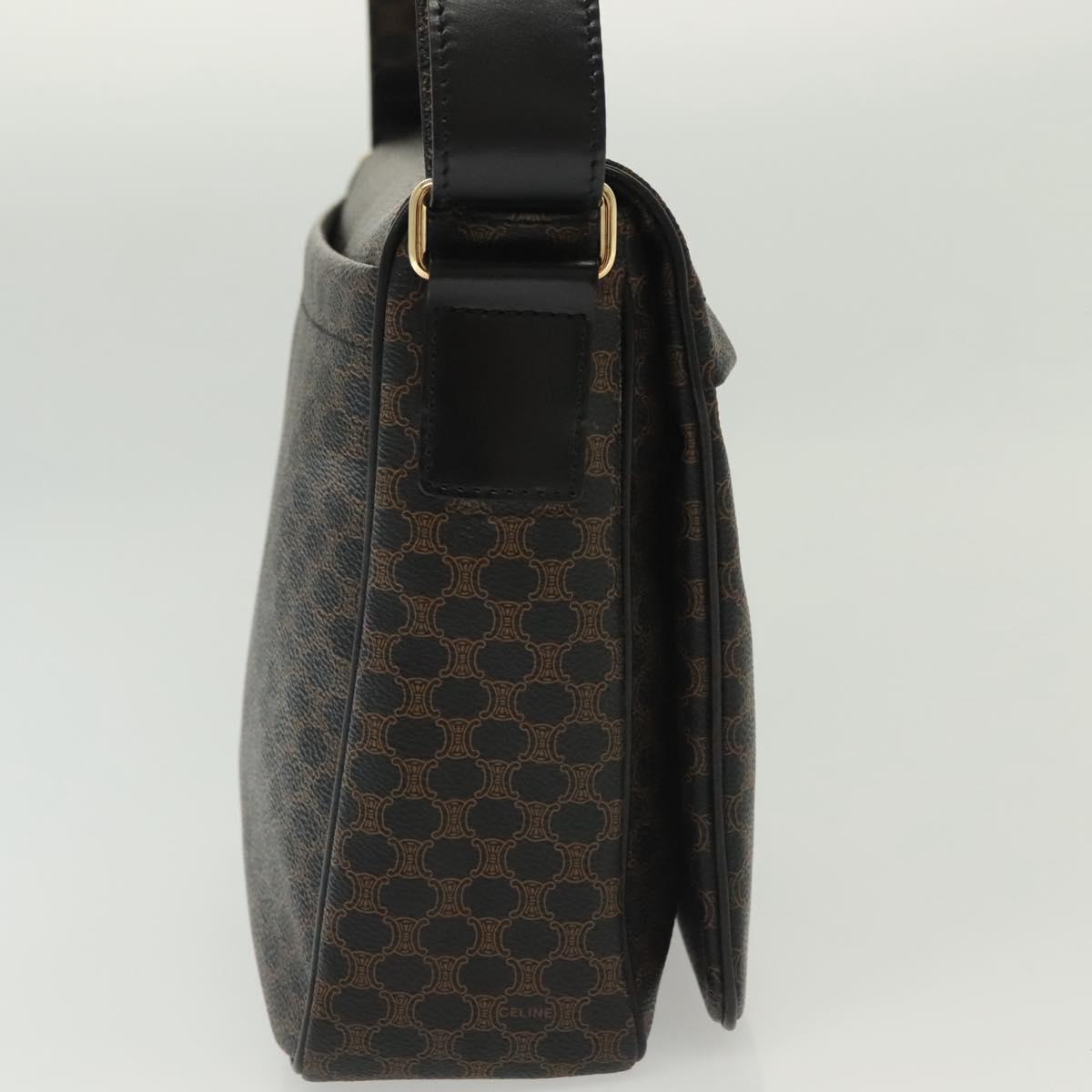CELINE Macadam Canvas Shoulder Bag PVC Leather Black Gold Auth 137858