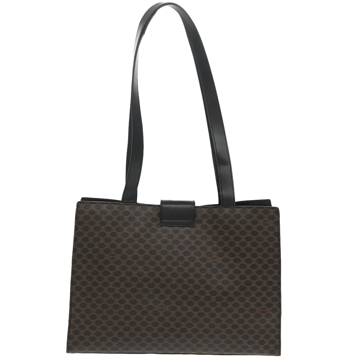 CELINE Macadam Canvas Shoulder Bag PVC Leather Black Gold Auth 99656