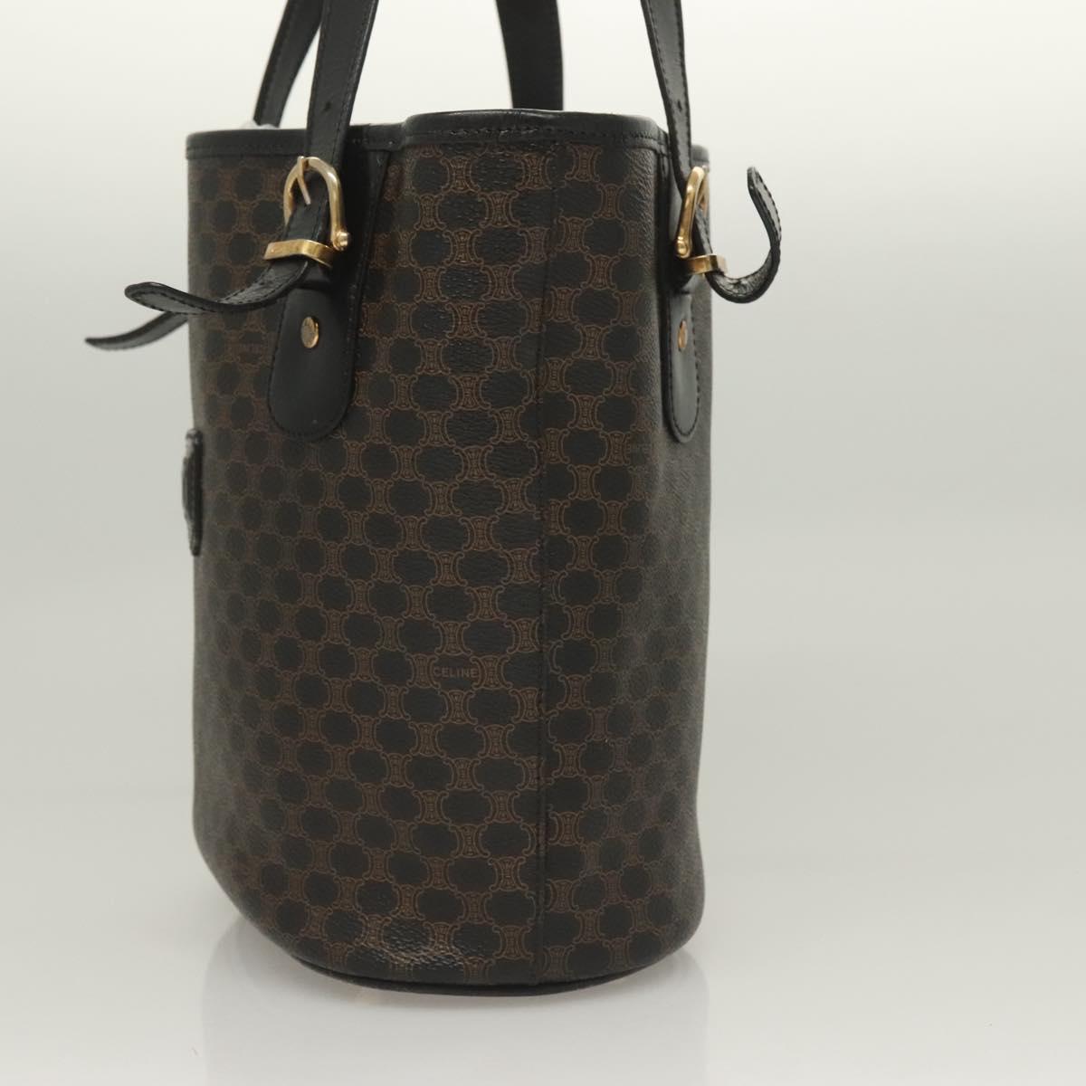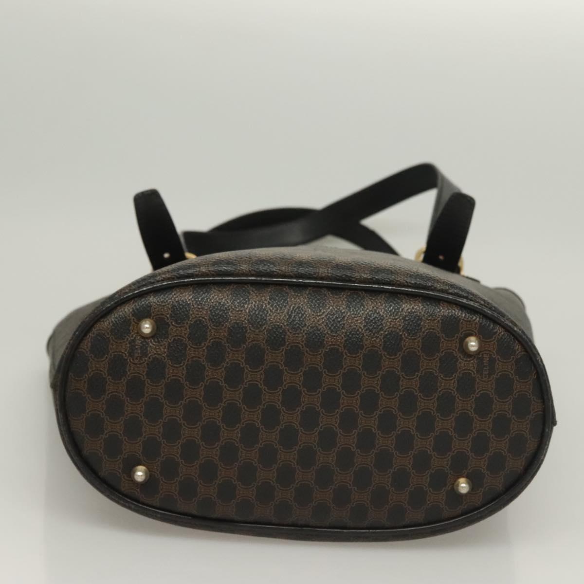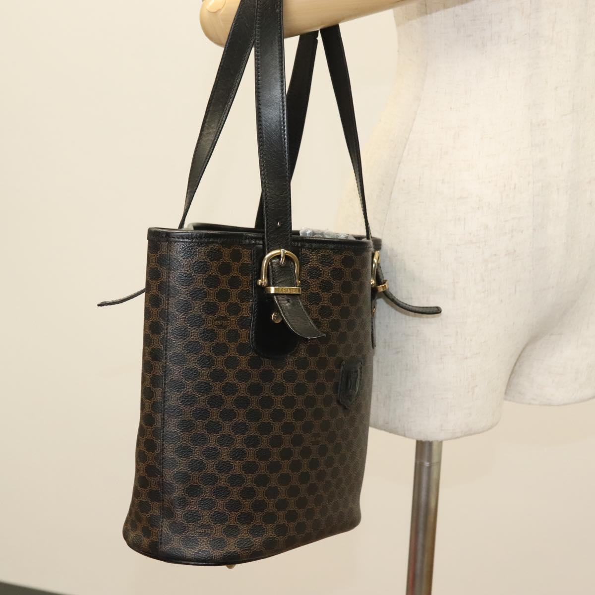 CELINE Macadam Canvas Tote Bag PVC Leather Black Gold Auth 131476