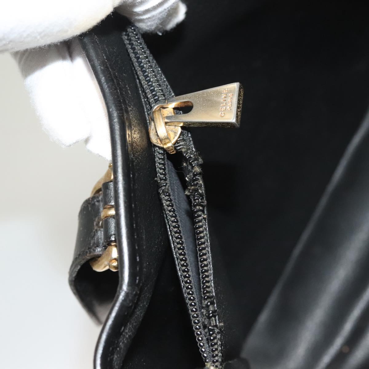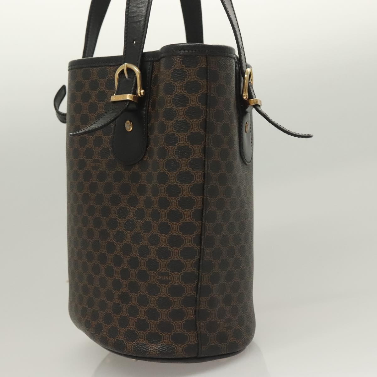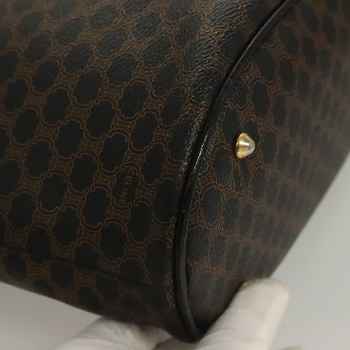CELINE Macadam Canvas Tote Bag PVC Leather Black Gold Auth 131476