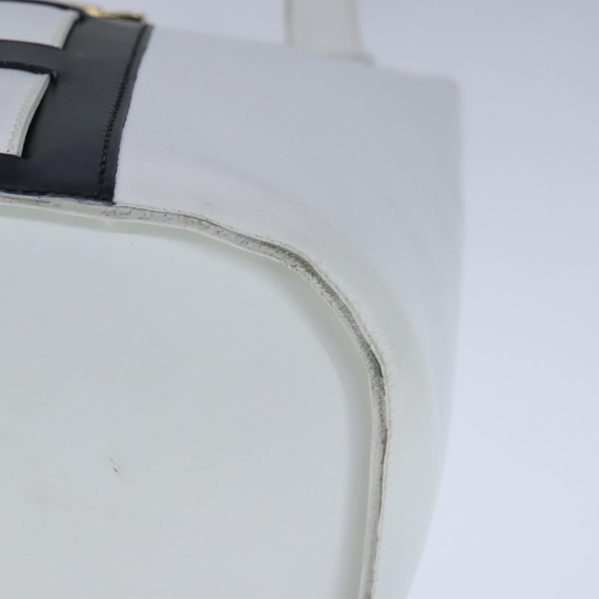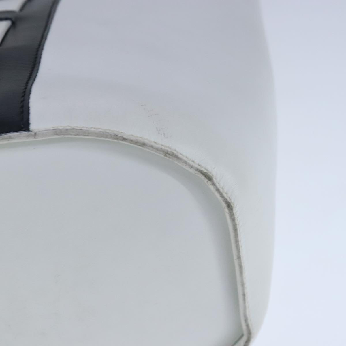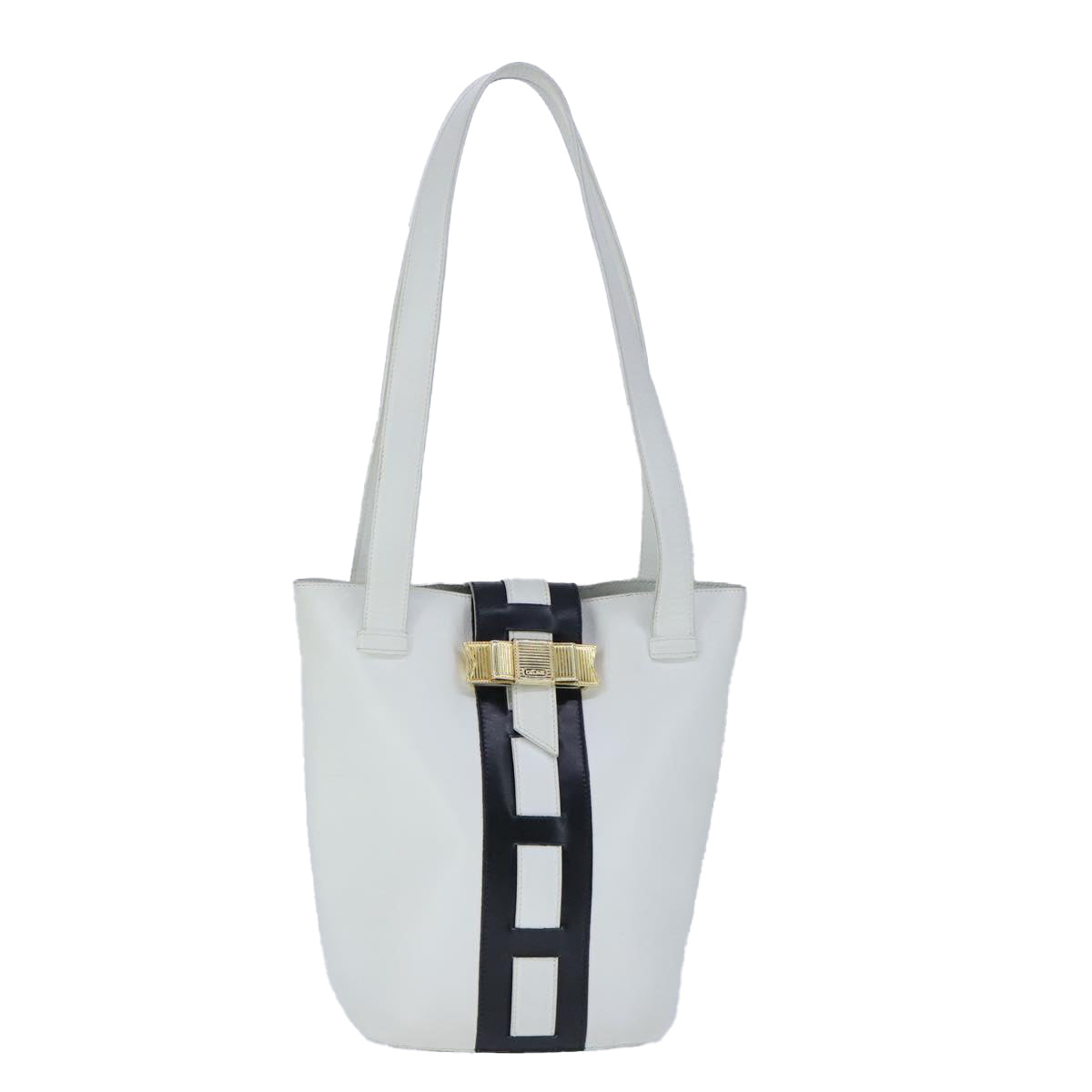 CELINE Ribbon Tote Bag Leather White Black Auth 100656