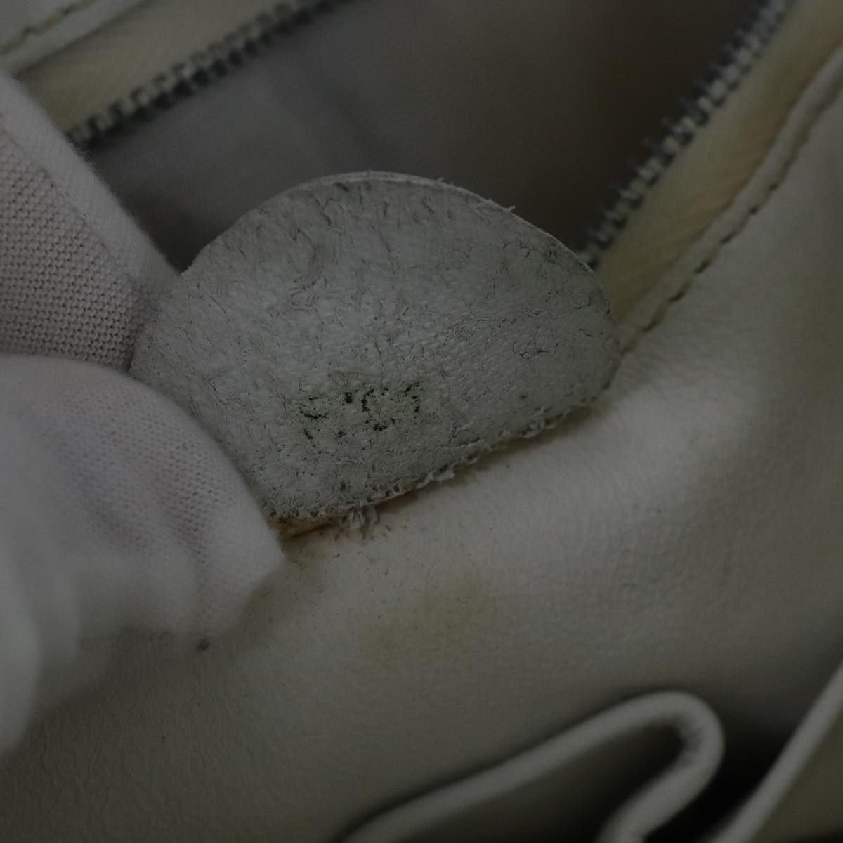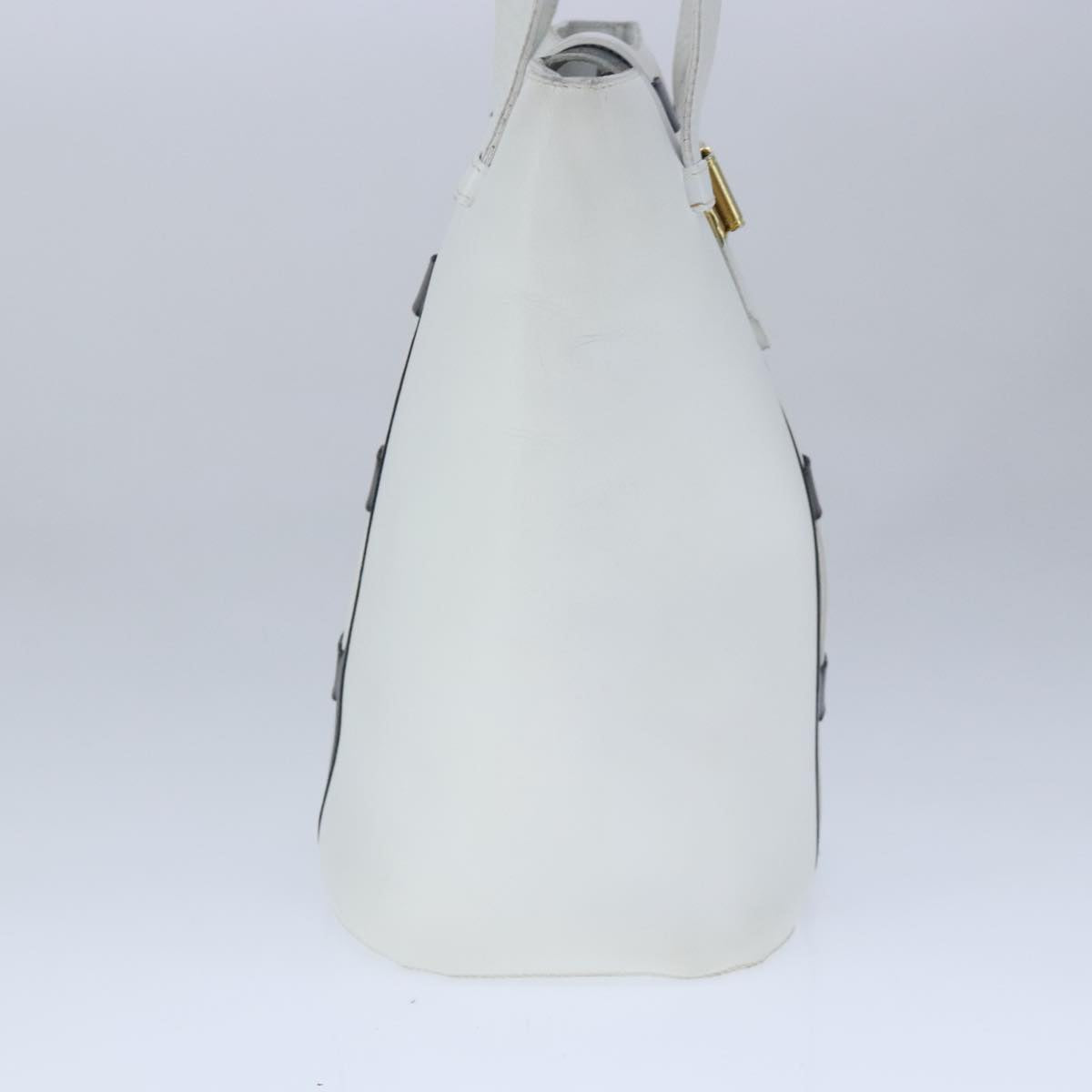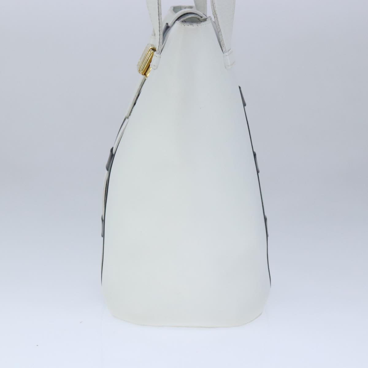 CELINE Ribbon Tote Bag Leather White Black Auth 100656