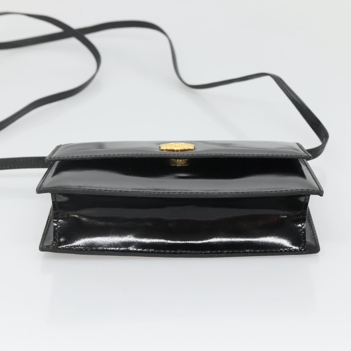 CELINE Shoulder Bag Enamel Black Gold Auth SW1458