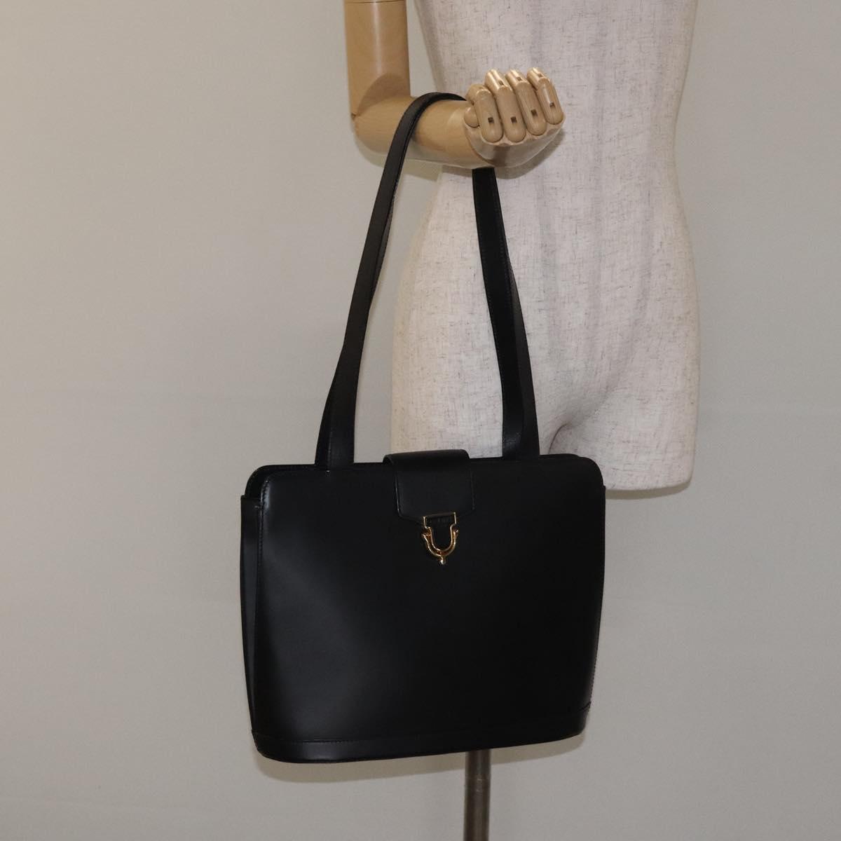 CELINE Shoulder Bag Leather Black Gold Auth BA3515