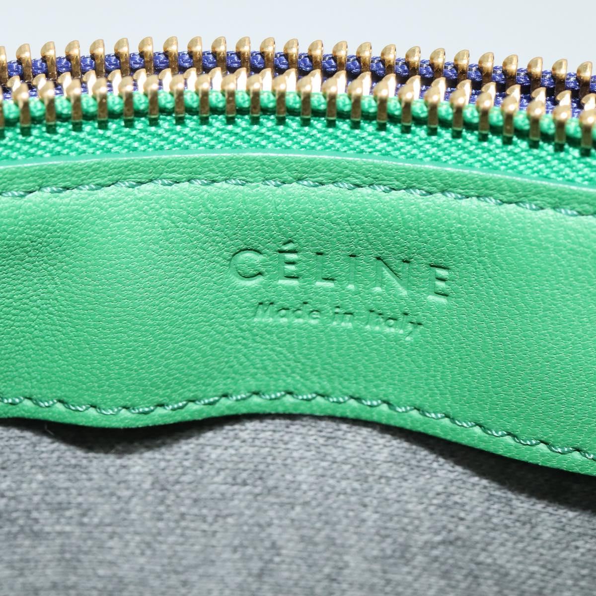 CELINE Trio Shoulder Bag Leather Green Gold Auth BA5510