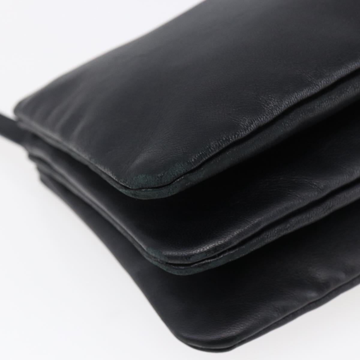 CELINE Trio Small Shoulder Bag Leather Black Gold Auth BA6727