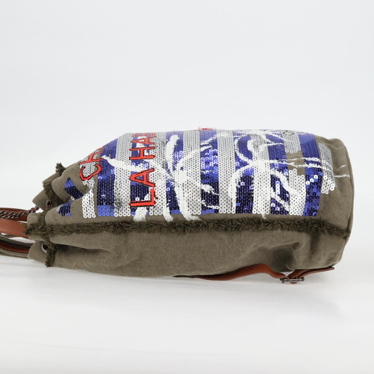 CHANEL Backpack Canvas Green CC Auth 126527M